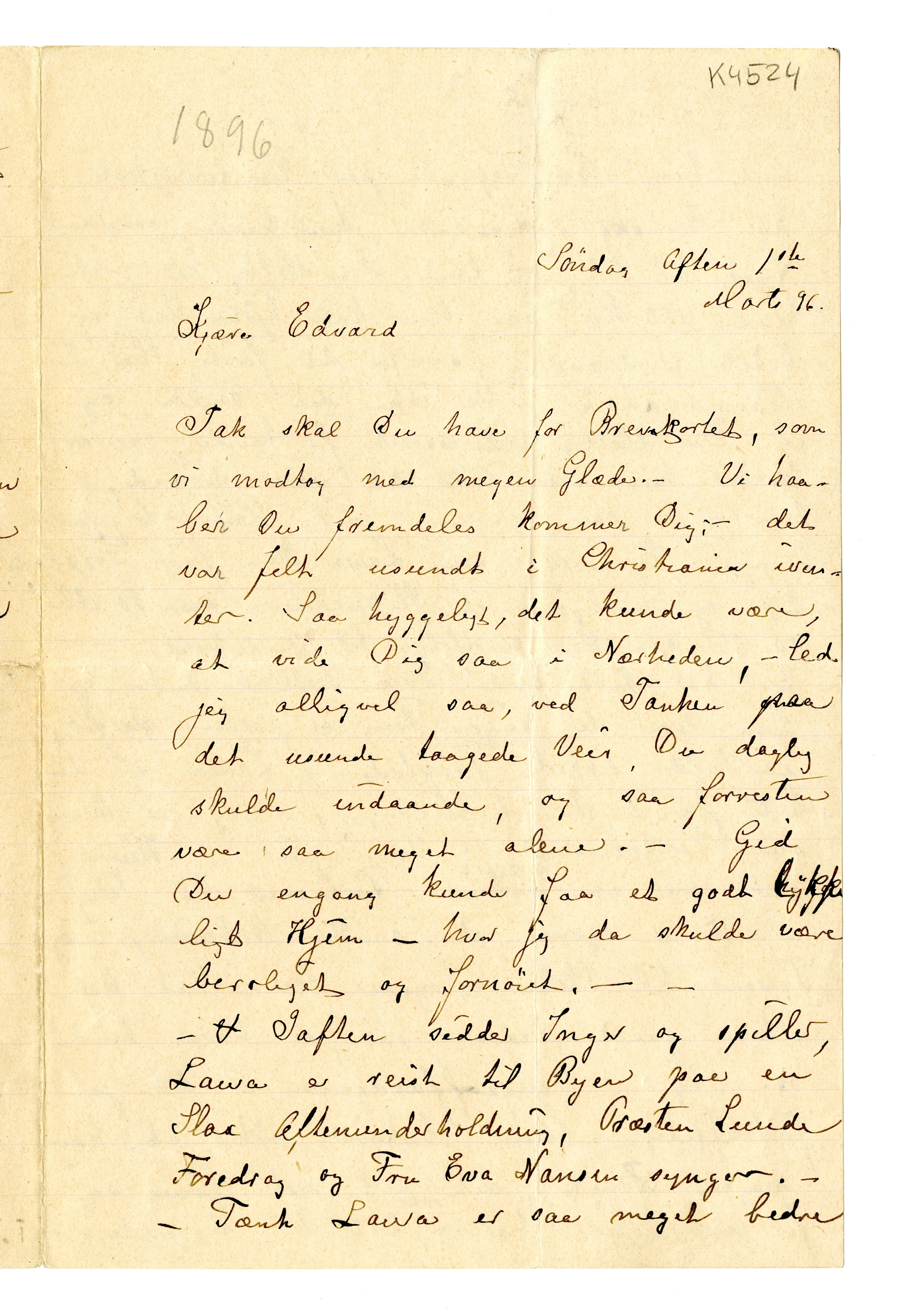 MM K 4524, Munchmuseet. Datert 01.03.1896. Brev fra Karen Bjølstad.