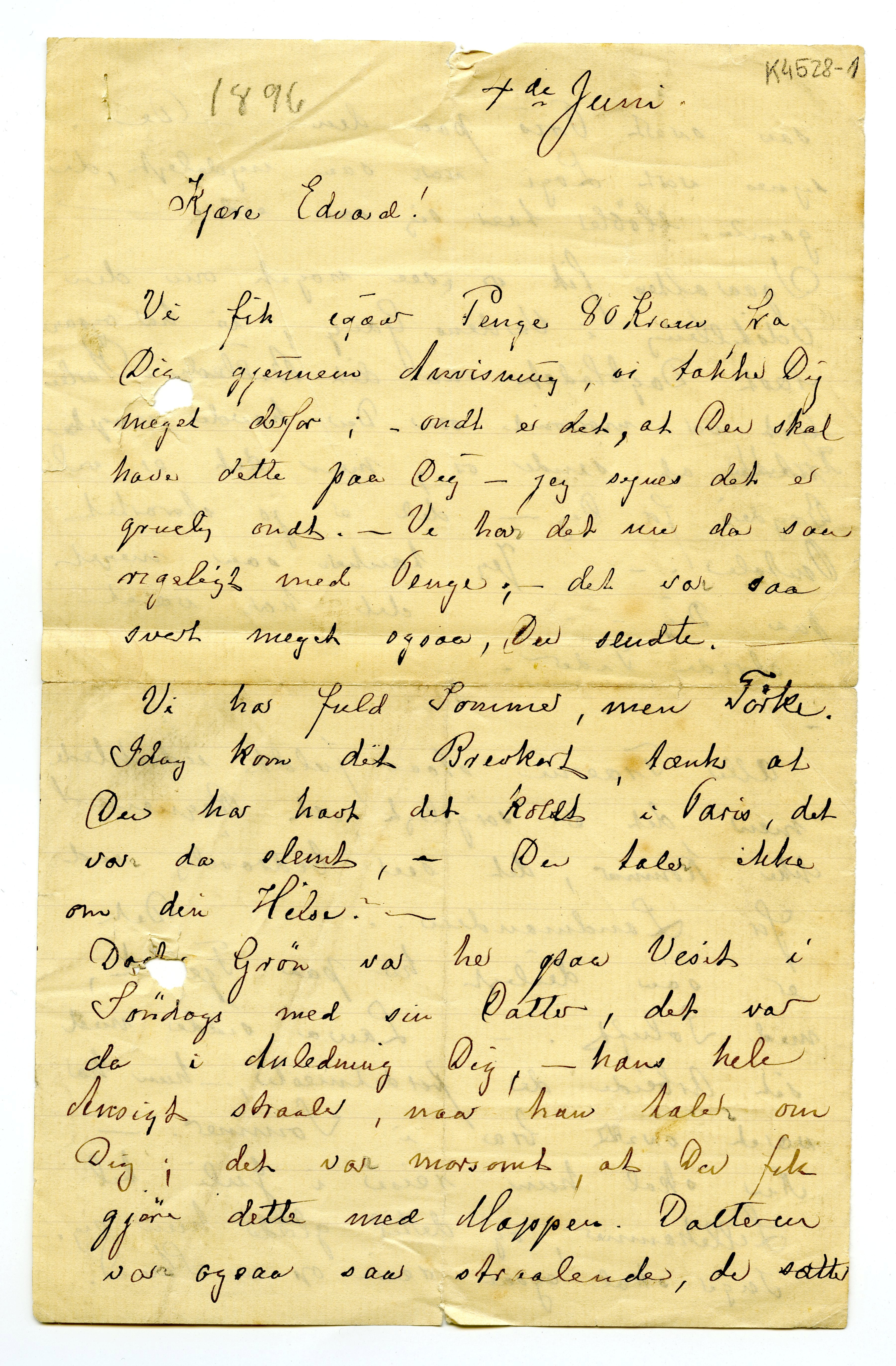 MM K 4528, Munchmuseet. Datert 04.06.1896. Brev fra Karen Bjølstad.