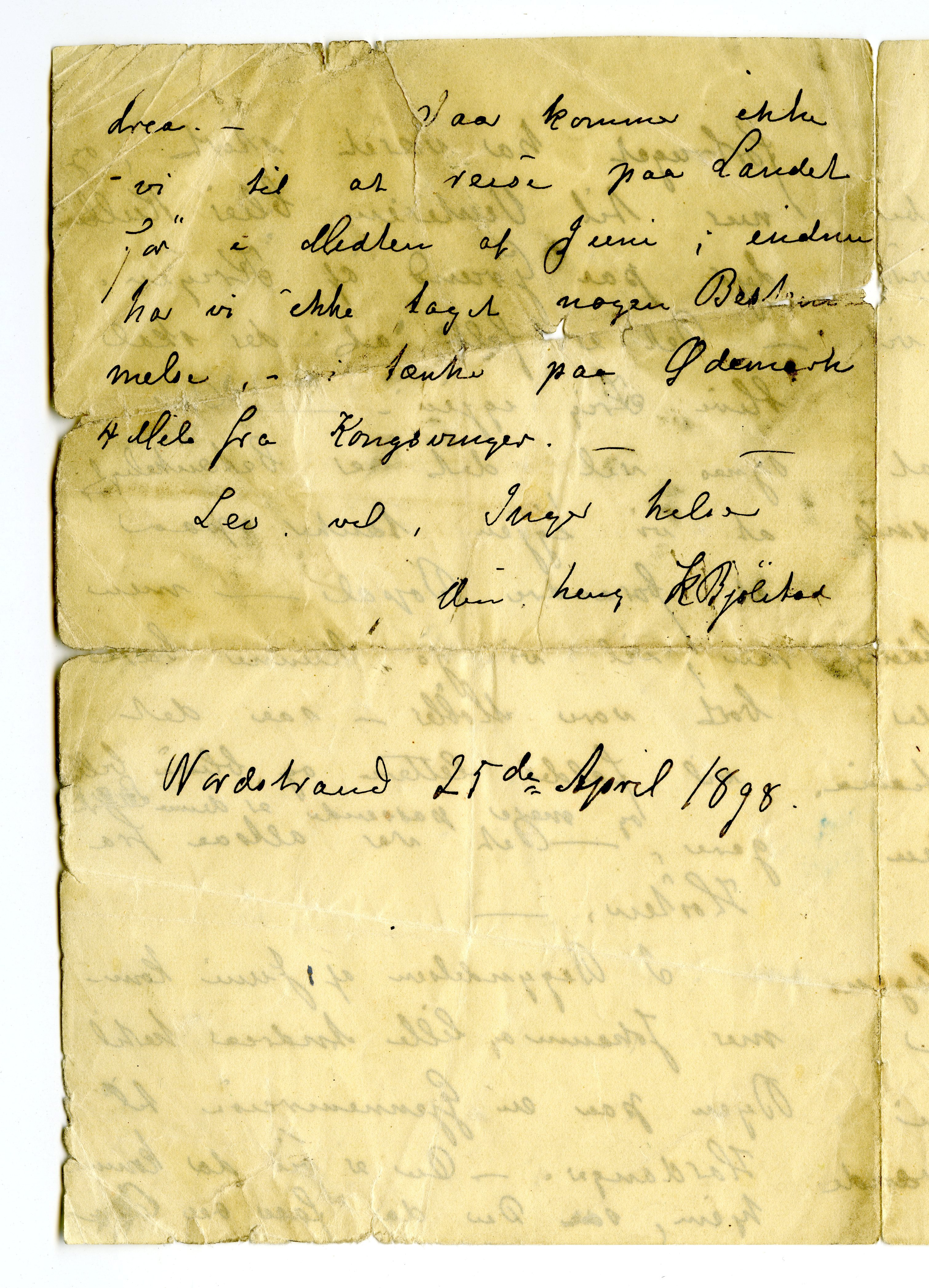 MM K 4542, Munchmuseet. Datert 25.04.1898. Brev fra Karen Bjølstad.