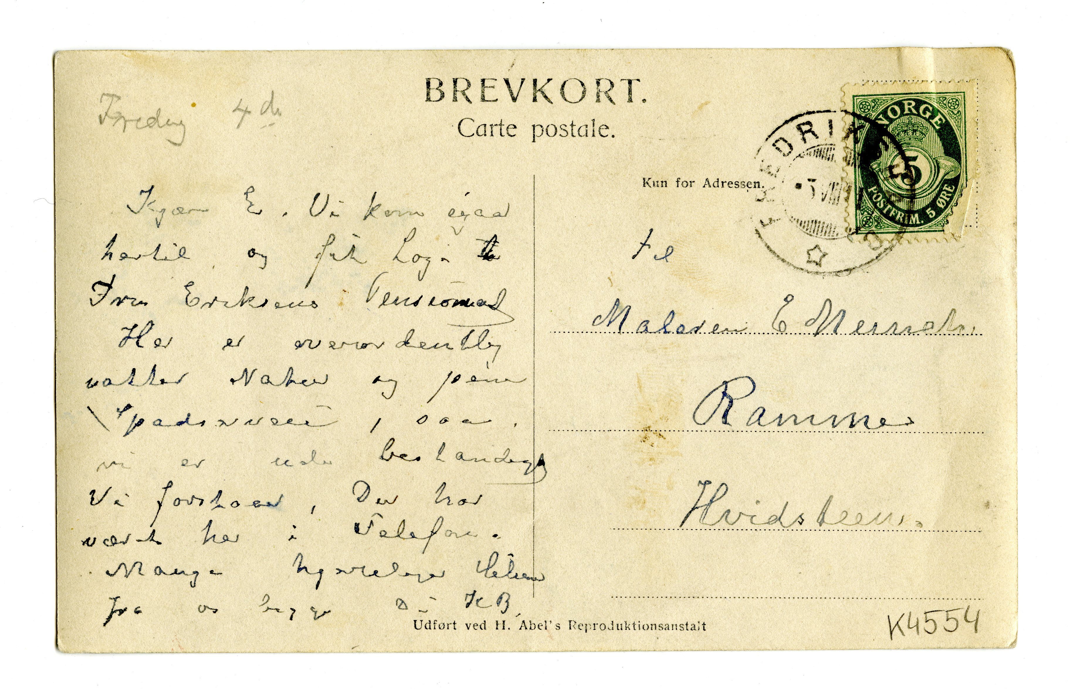MM K 4554, Munchmuseet. Datert 04.08.1911. Brev fra Karen Bjølstad.
