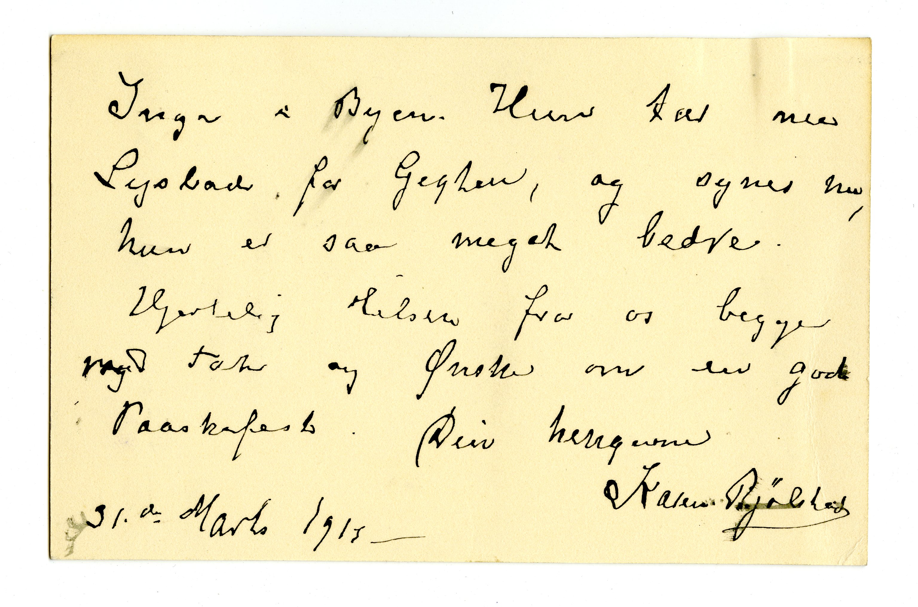 MM K 4567, Munchmuseet. Datert 31.03.1915. Brev fra Karen Bjølstad.