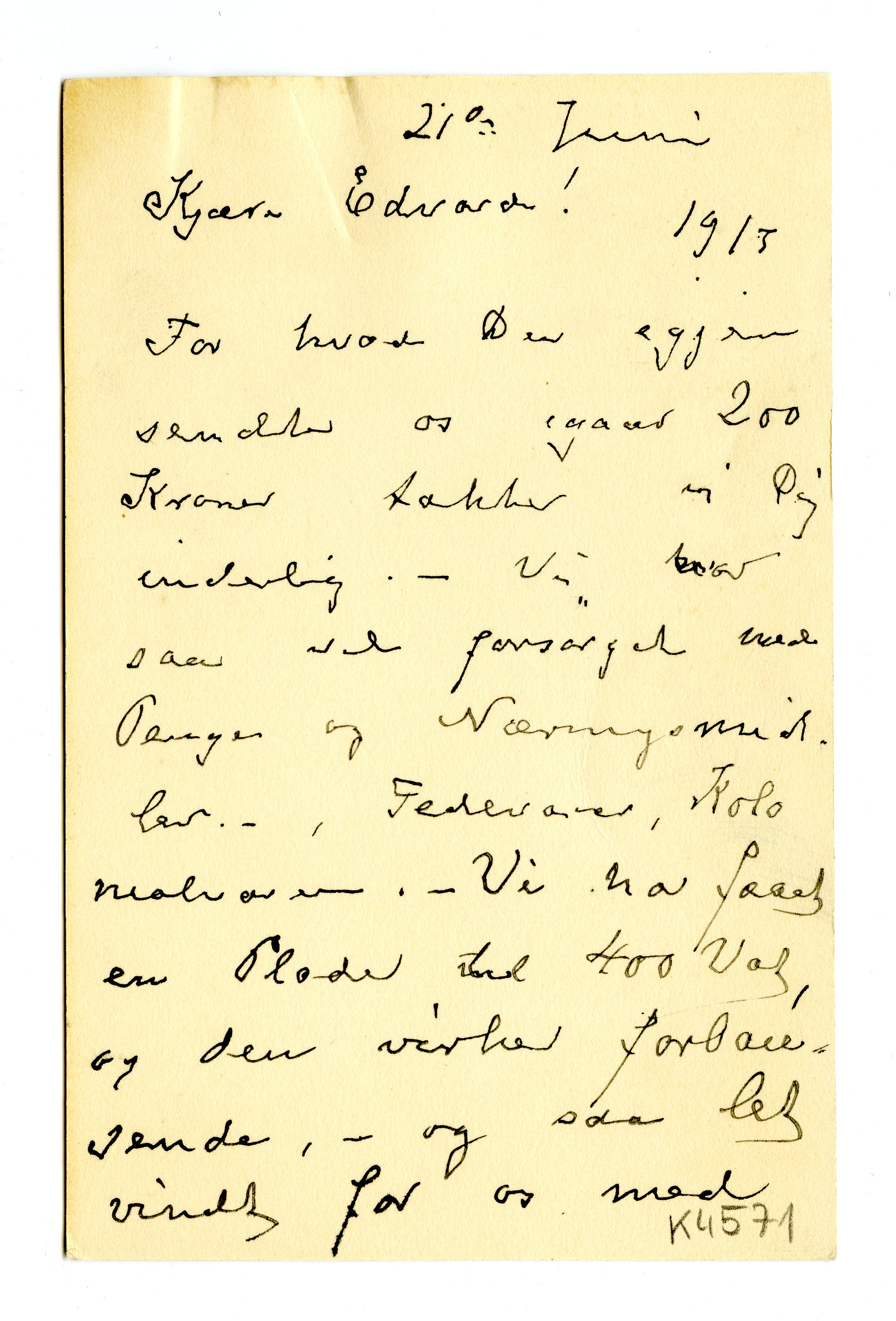 MM K 4571, Munchmuseet. Datert 21.06.1917. Brev fra Karen Bjølstad.