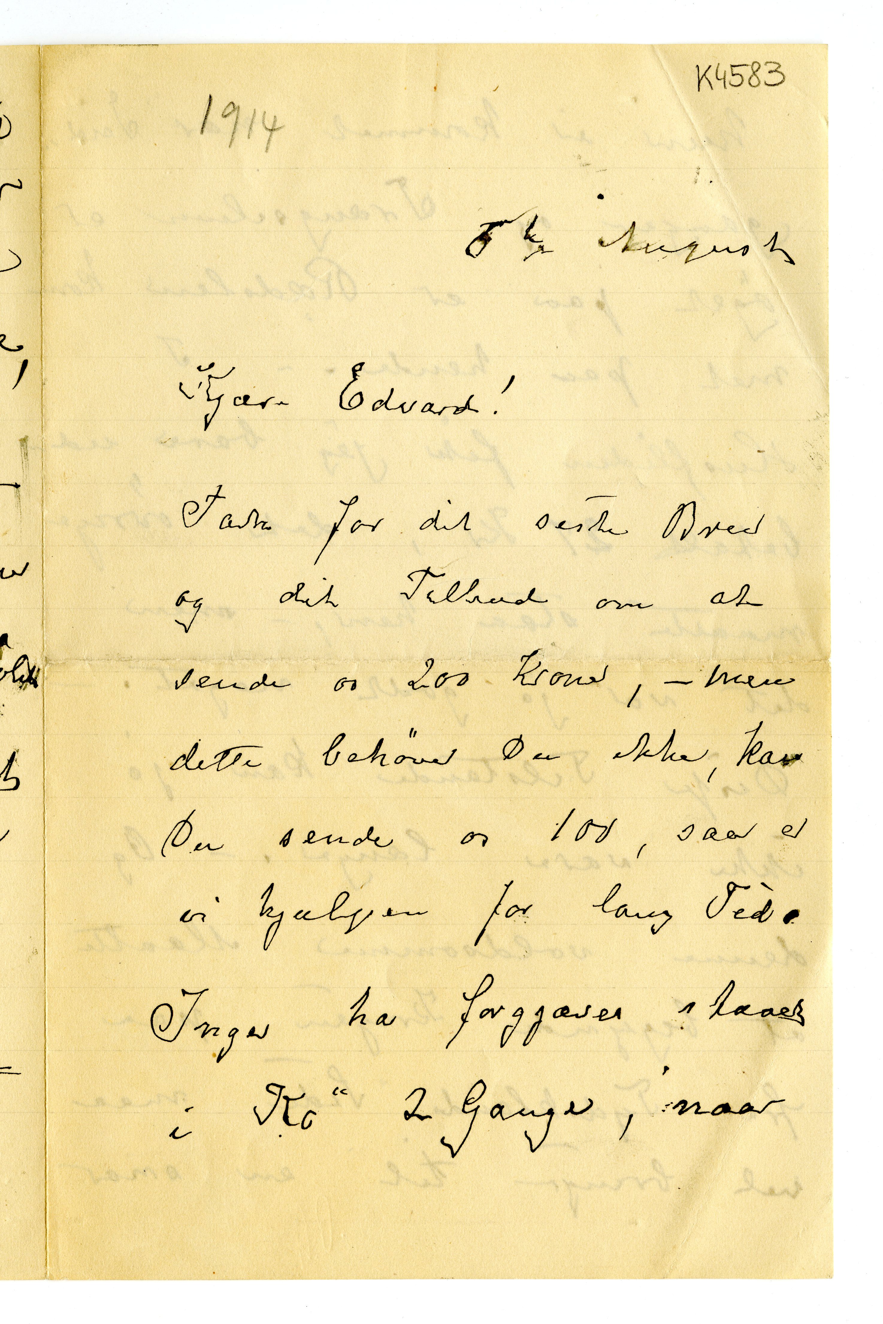 MM K 4583, Munchmuseet. Datert 05.08.1914. Brev fra Karen Bjølstad.