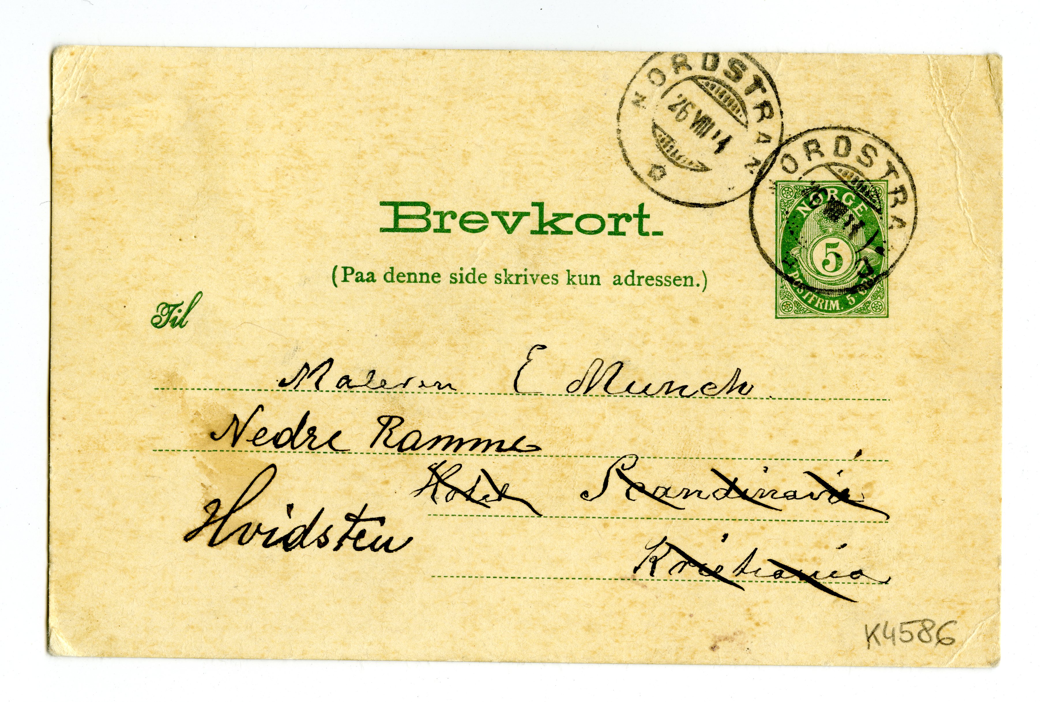 MM K 4586, Munchmuseet. Datert 26.08.1911. Brev fra Karen Bjølstad.