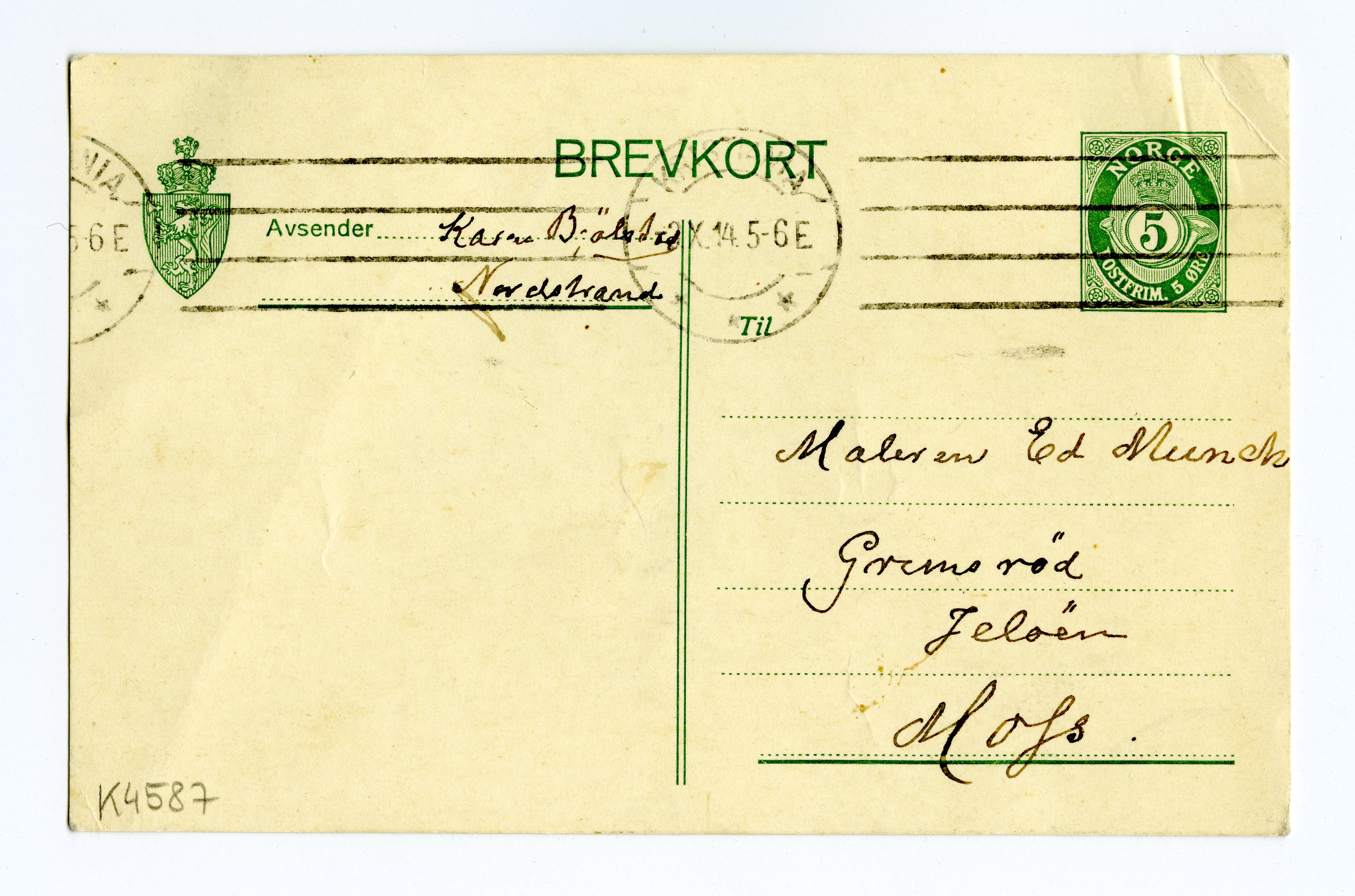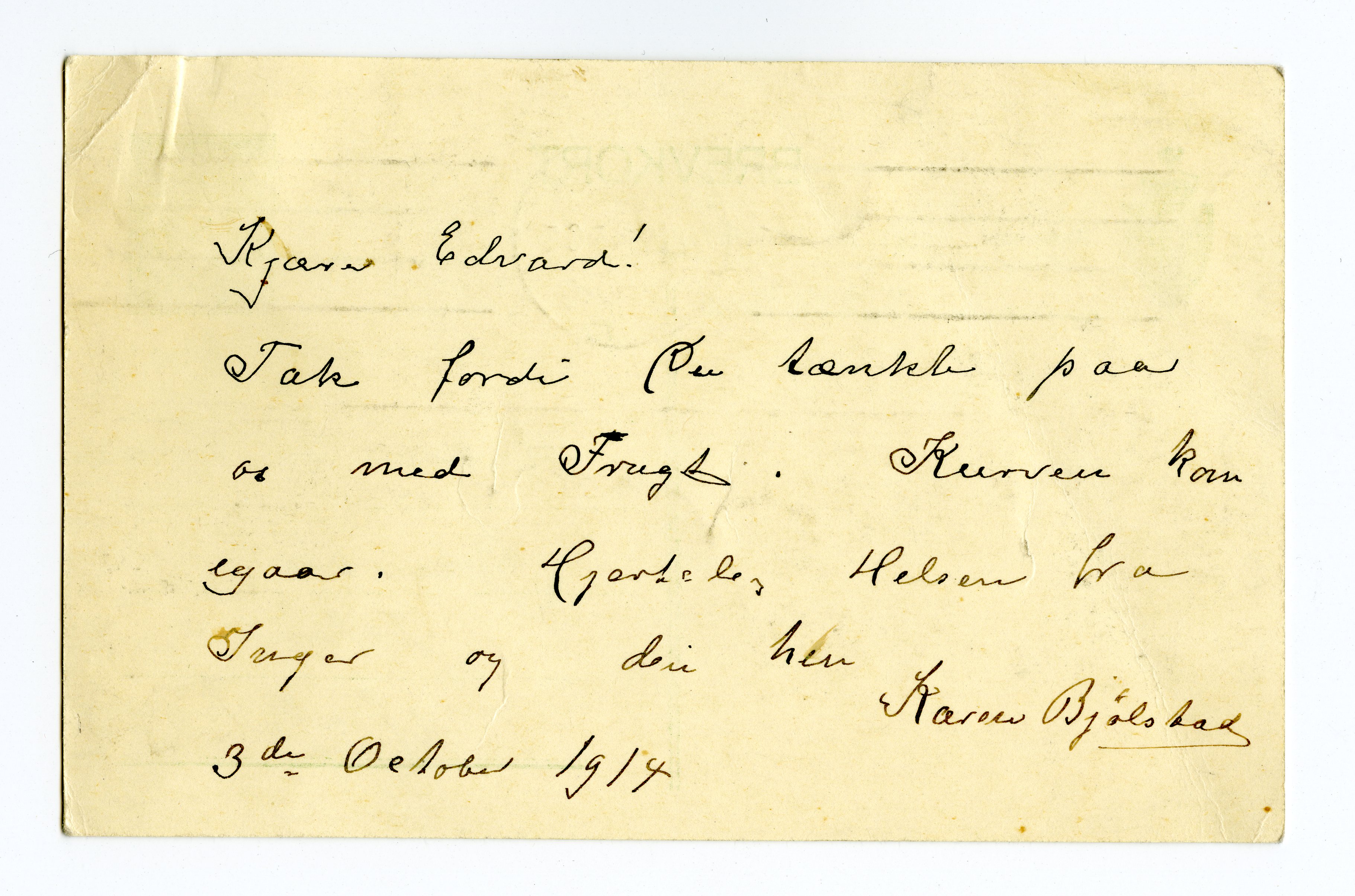 MM K 4587, Munchmuseet. Datert 03.10.1914. Brev fra Karen Bjølstad.