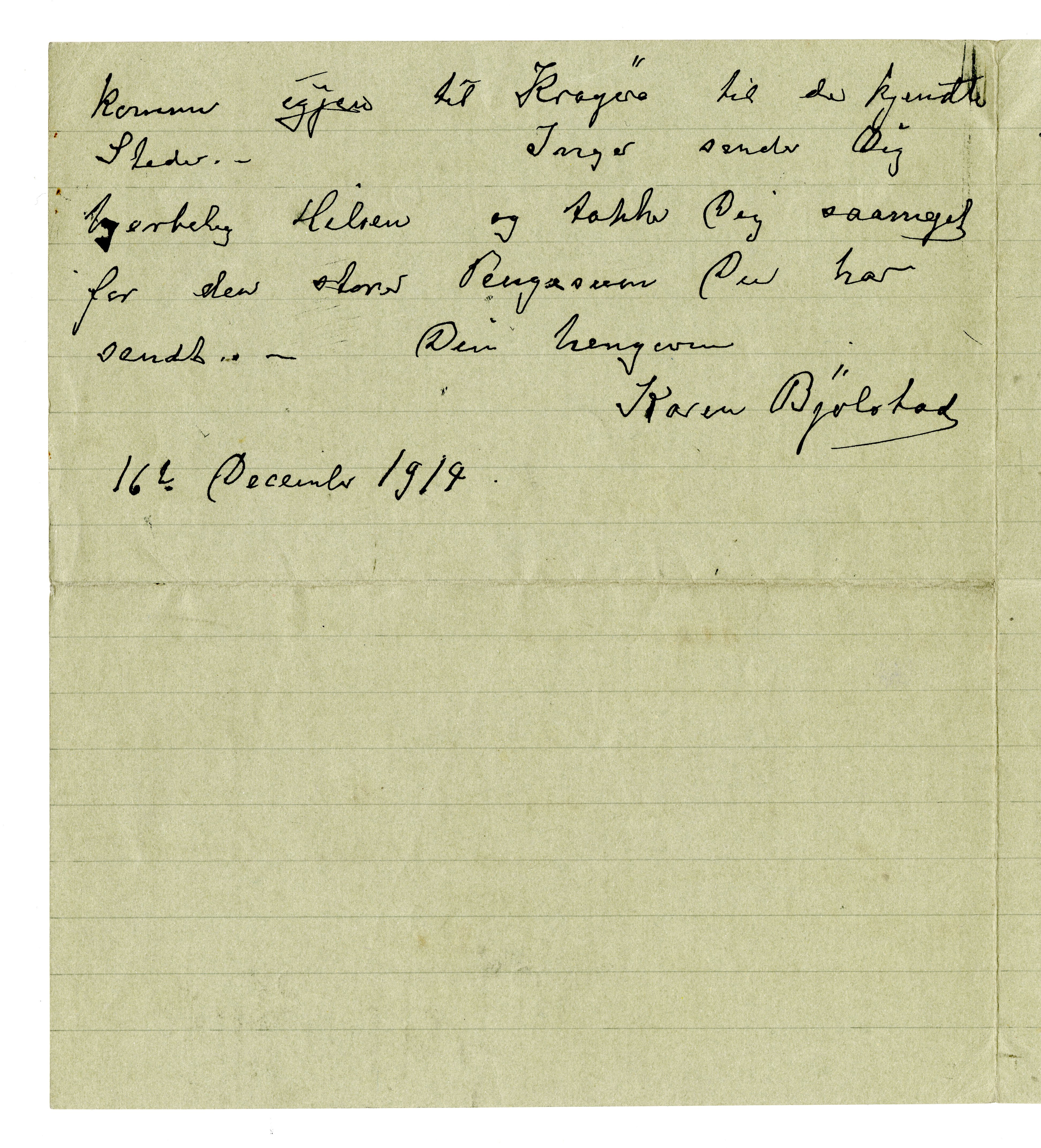 MM K 4591, Munchmuseet. Datert 16.12.1914. Brev fra Karen Bjølstad.