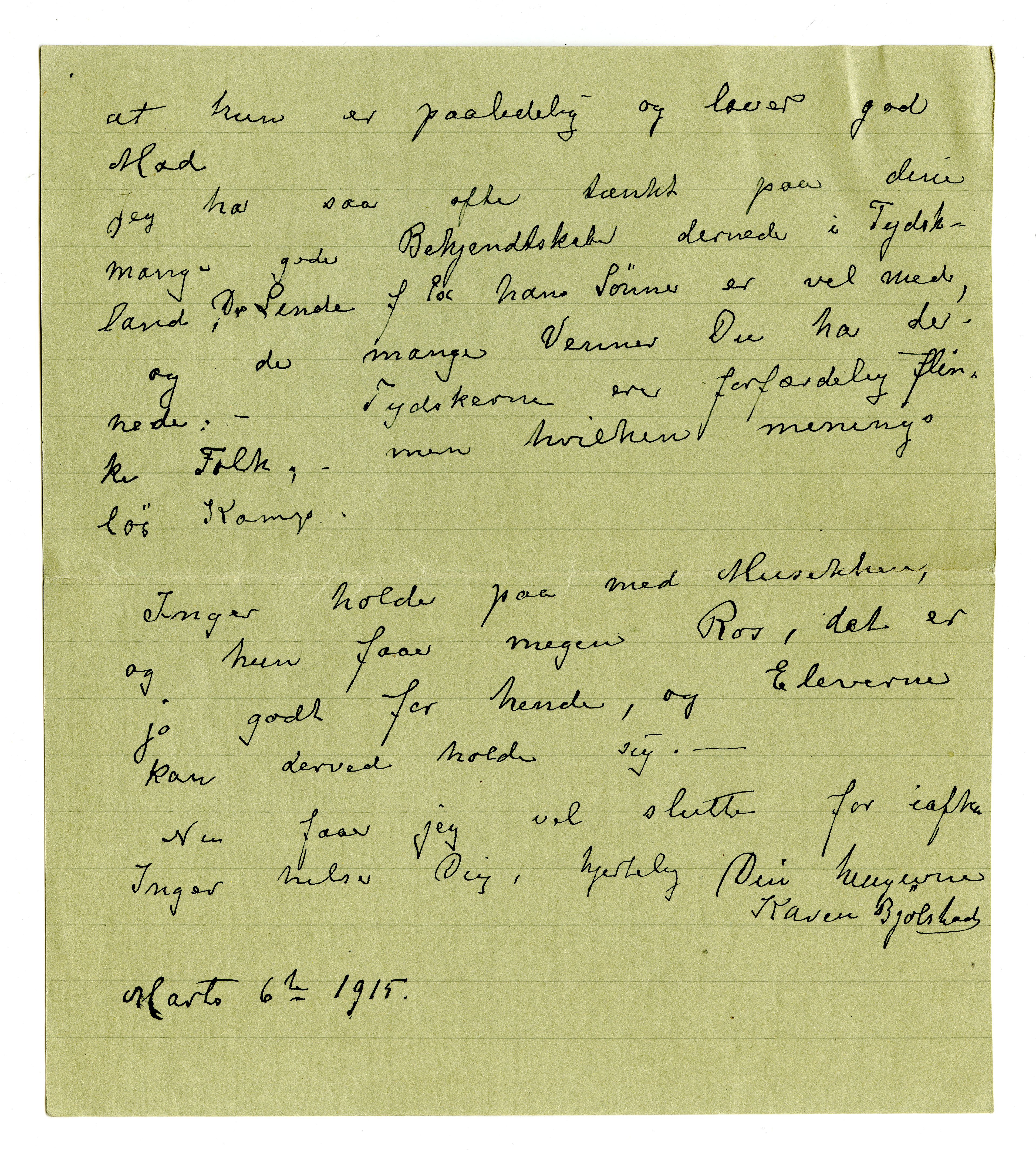 MM K 4596, Munchmuseet. Datert 06.03.1915. Brev fra Karen Bjølstad.