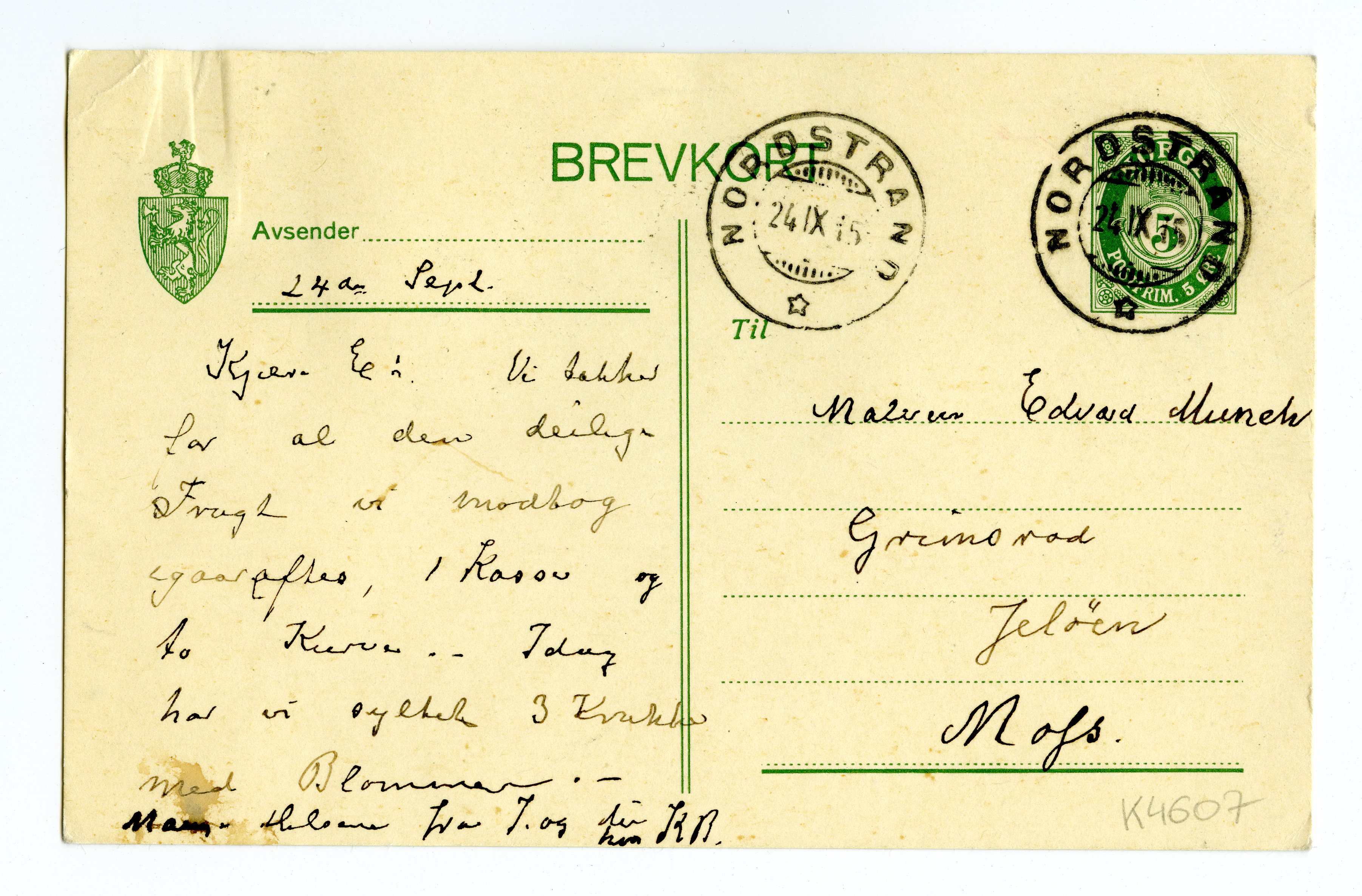 MM K 4607, Munchmuseet. Datert 24.09.1915. Brev fra Karen Bjølstad.