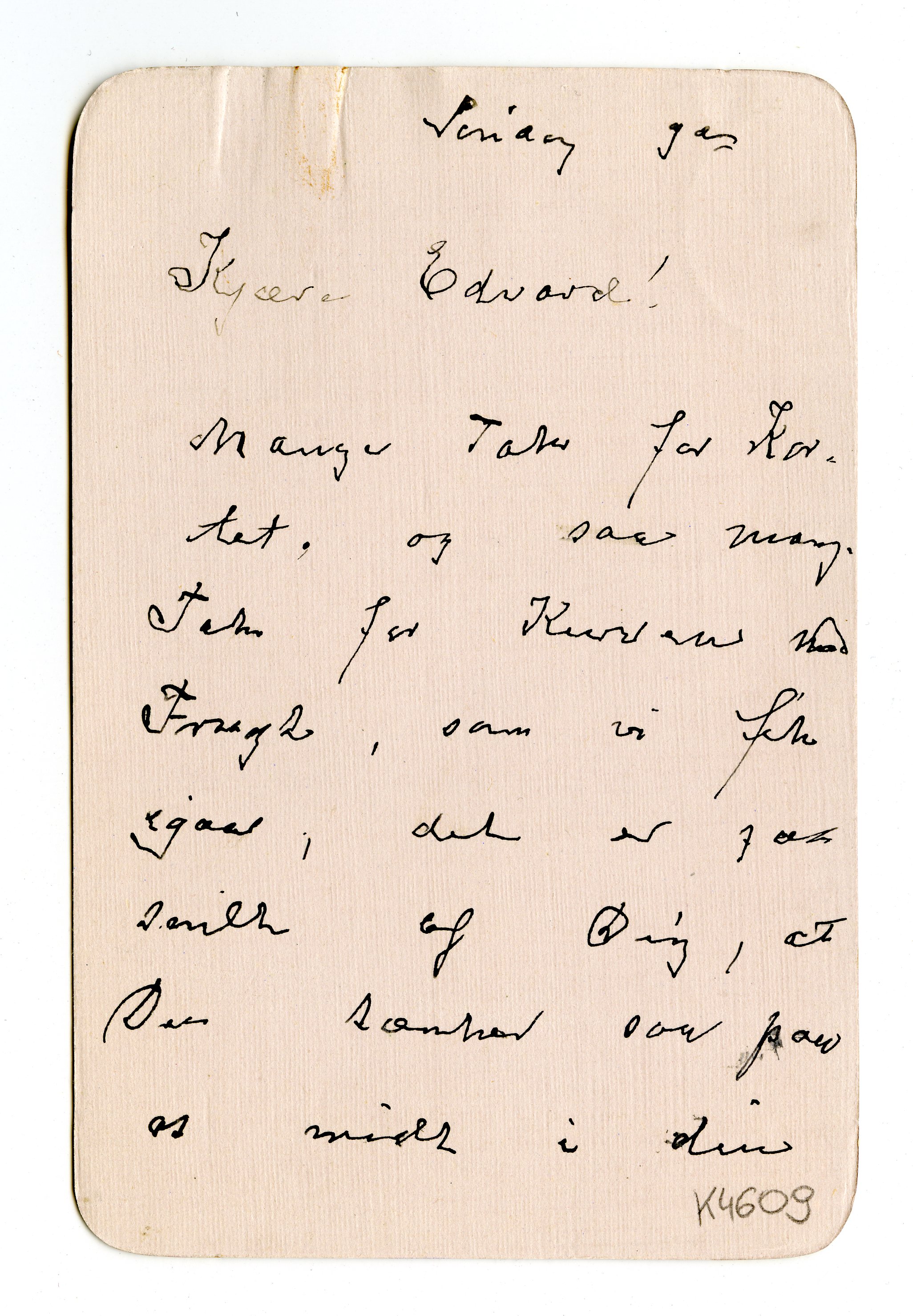 MM K 4609, Munchmuseet. Datert 09.[??].1915. Brev fra Karen Bjølstad.