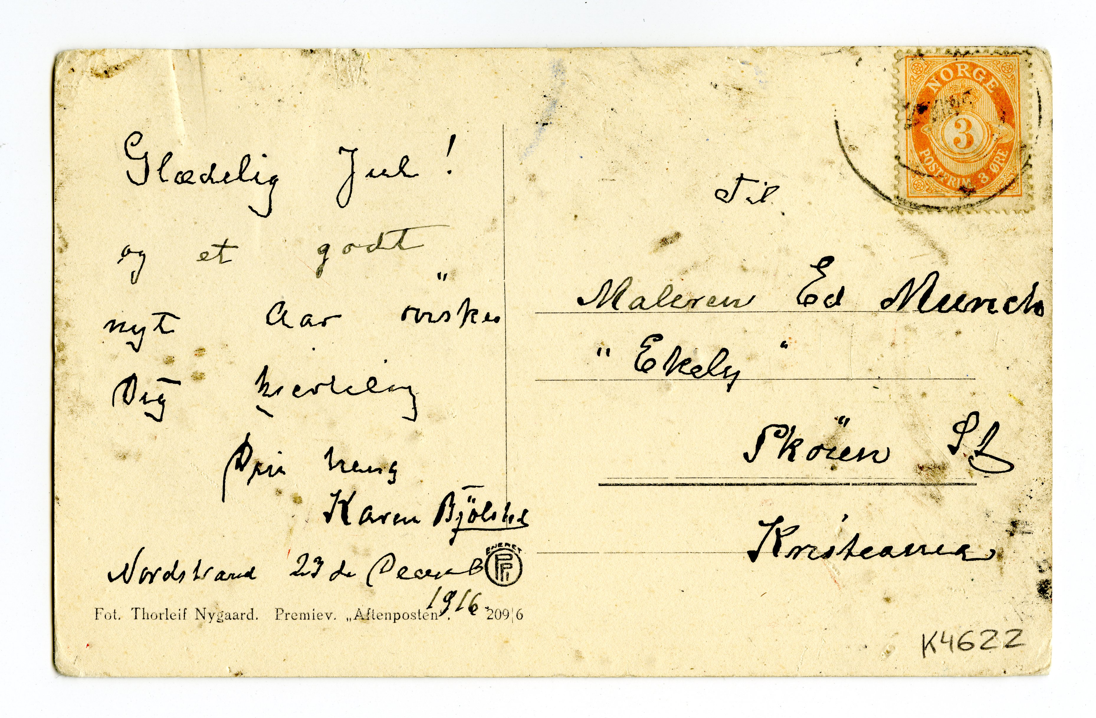 MM K 4622, Munchmuseet. Datert 23.12.1916. Brev fra Karen Bjølstad.