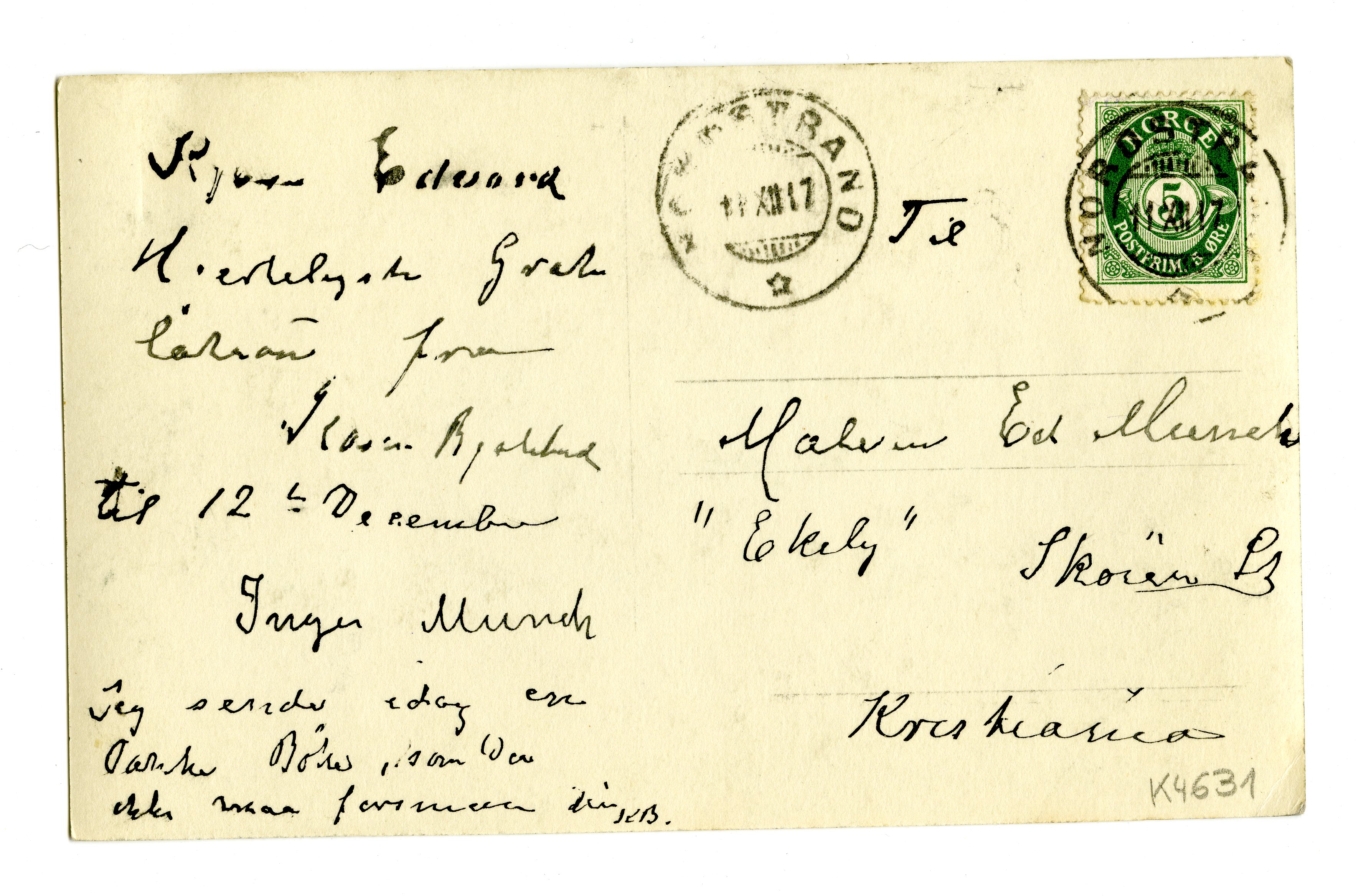 MM K 4631, Munchmuseet. Datert 12.12.1917. Brev fra Karen Bjølstad.