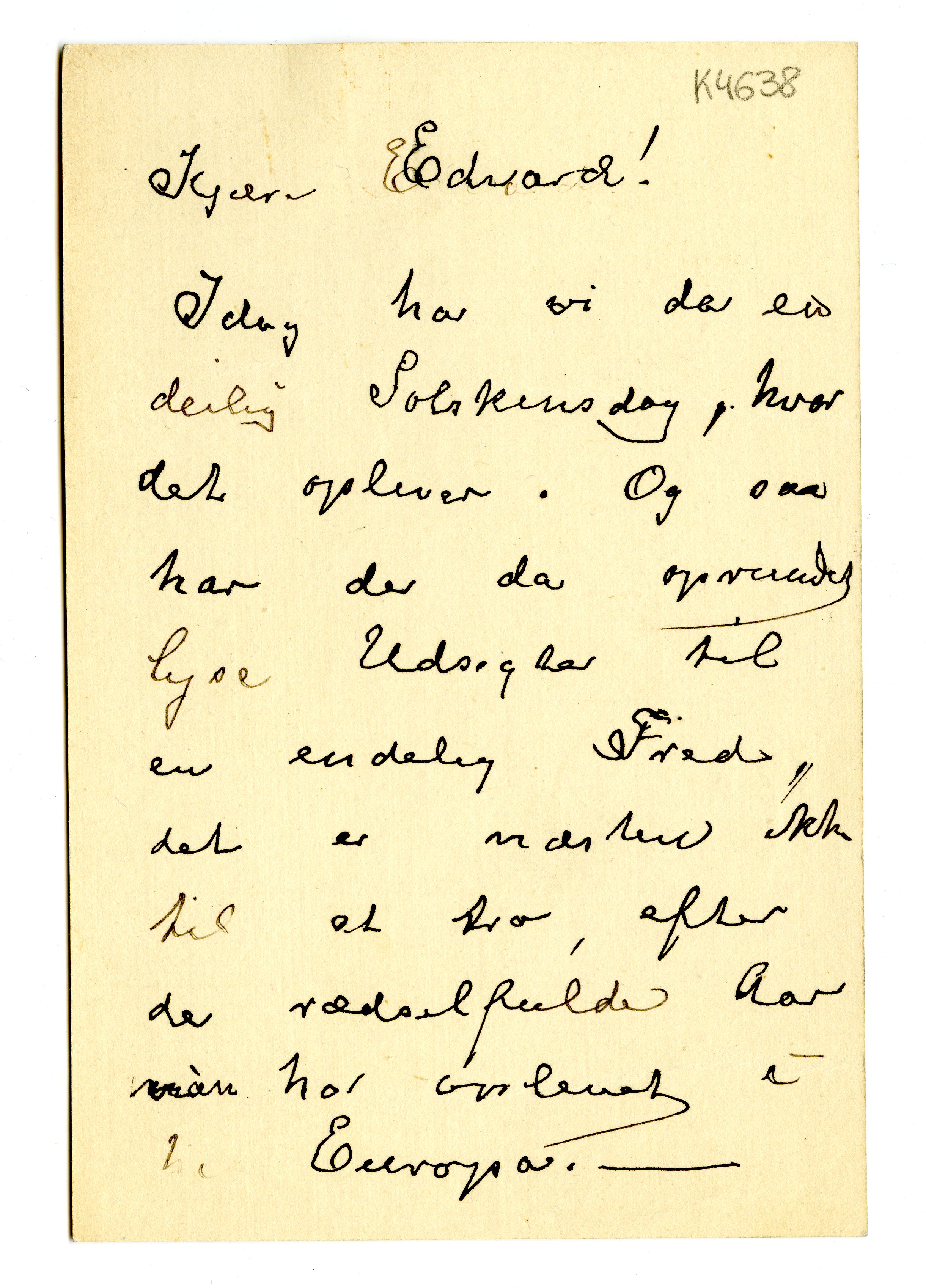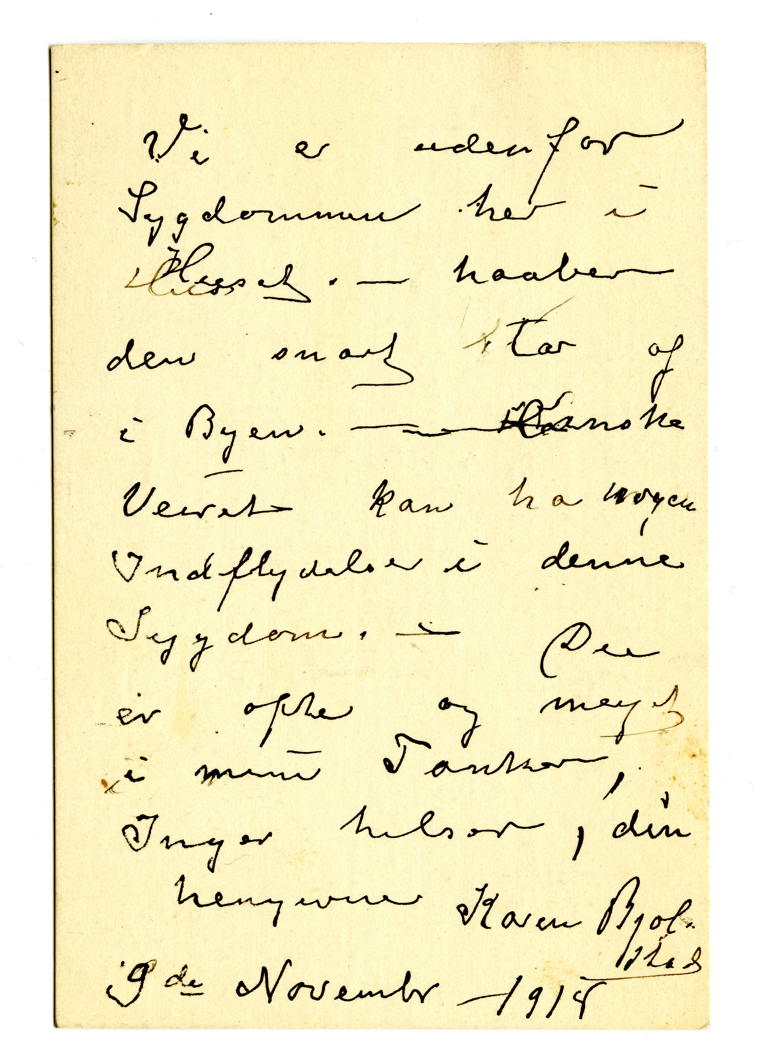 MM K 4638, Munchmuseet. Datert 09.11.1918. Brev fra Karen Bjølstad.