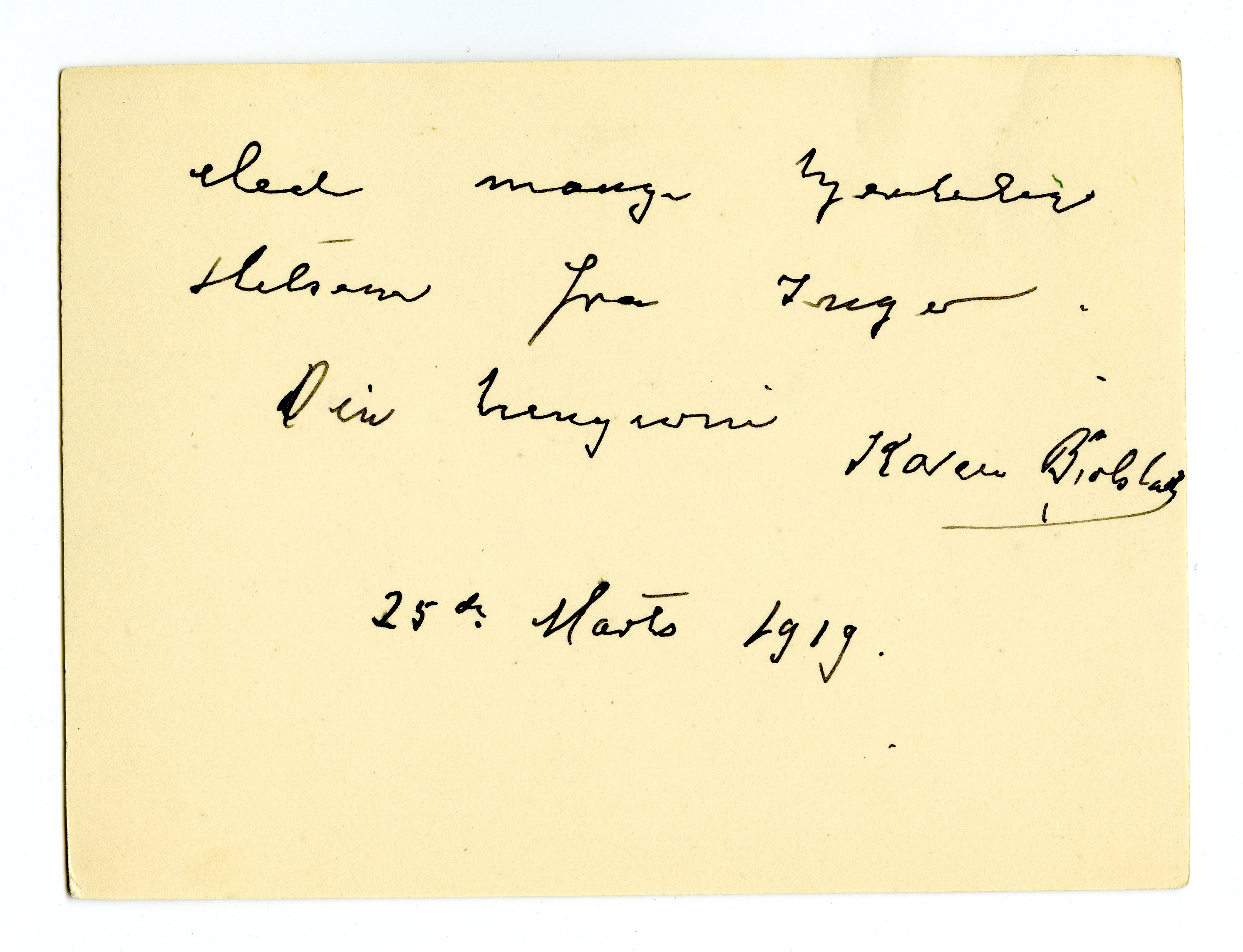 MM K 4648, Munchmuseet. Datert 25.03.1919. Brev fra Karen Bjølstad.