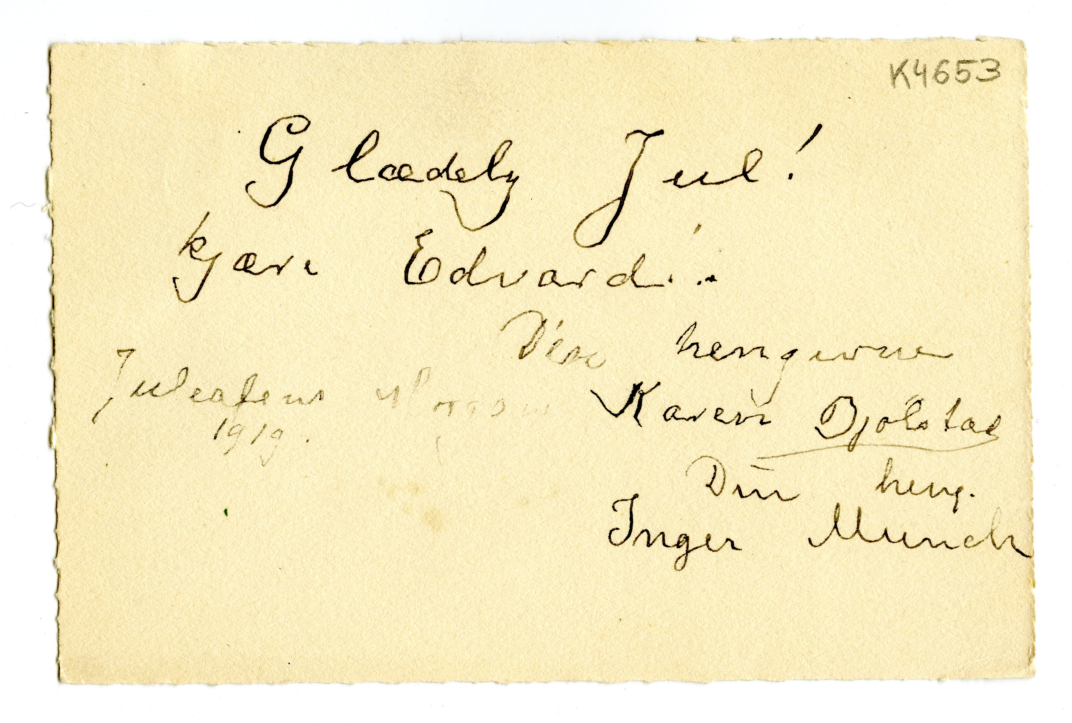 MM K 4653, Munchmuseet. Datert 24.12.1919. Brev fra Karen Bjølstad.
