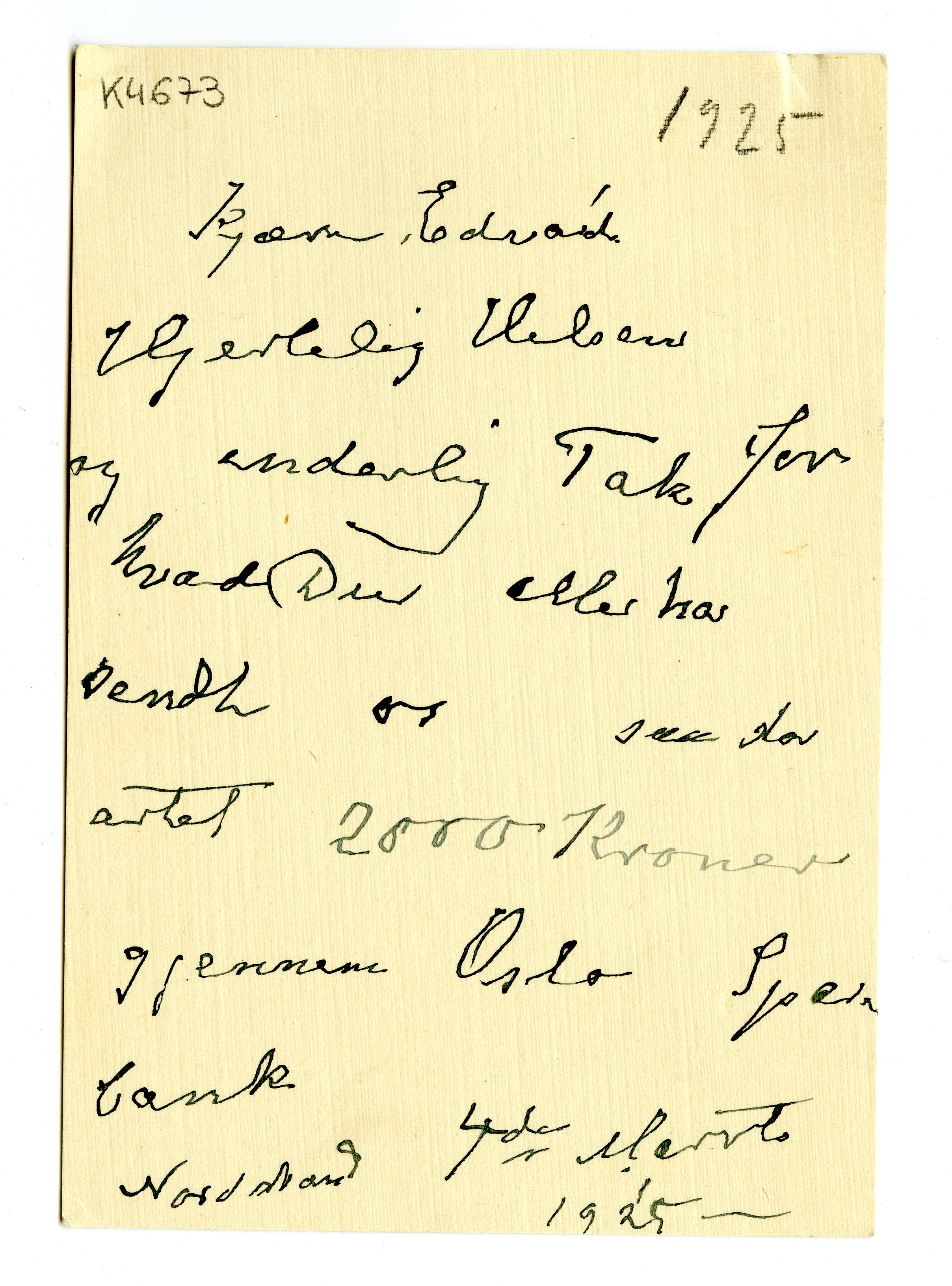 MM K 4673, Munchmuseet. Datert 04.03.1925. Brev fra Karen Bjølstad.