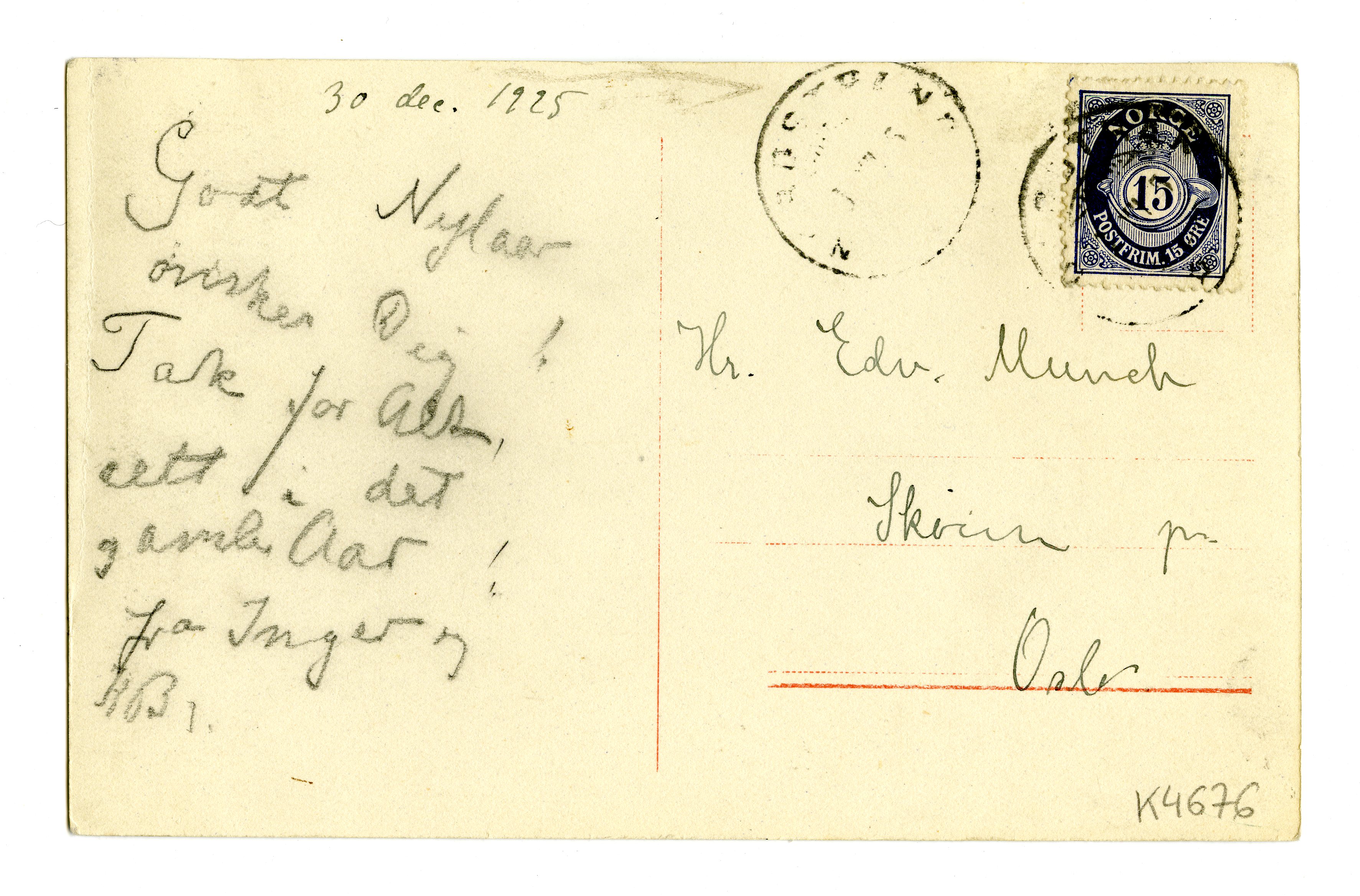 MM K 4676, Munchmuseet. Datert 30.12.1925. Brev fra Karen Bjølstad.
