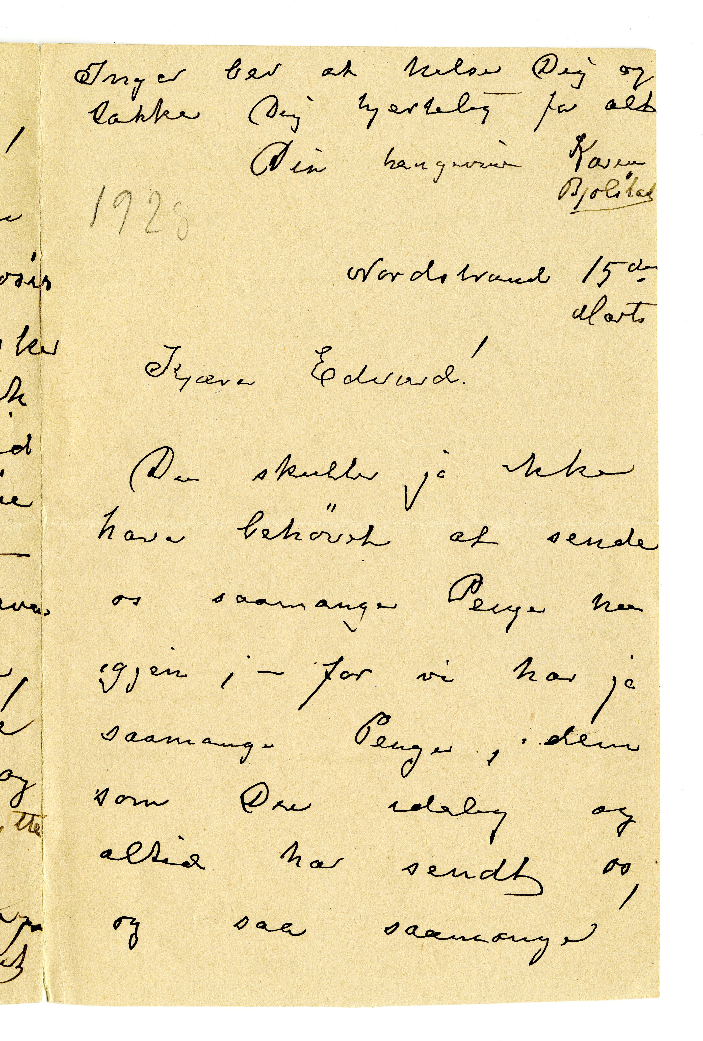 MM K 4681, Munchmuseet. Datert 15.03.1928. Brev fra Karen Bjølstad.