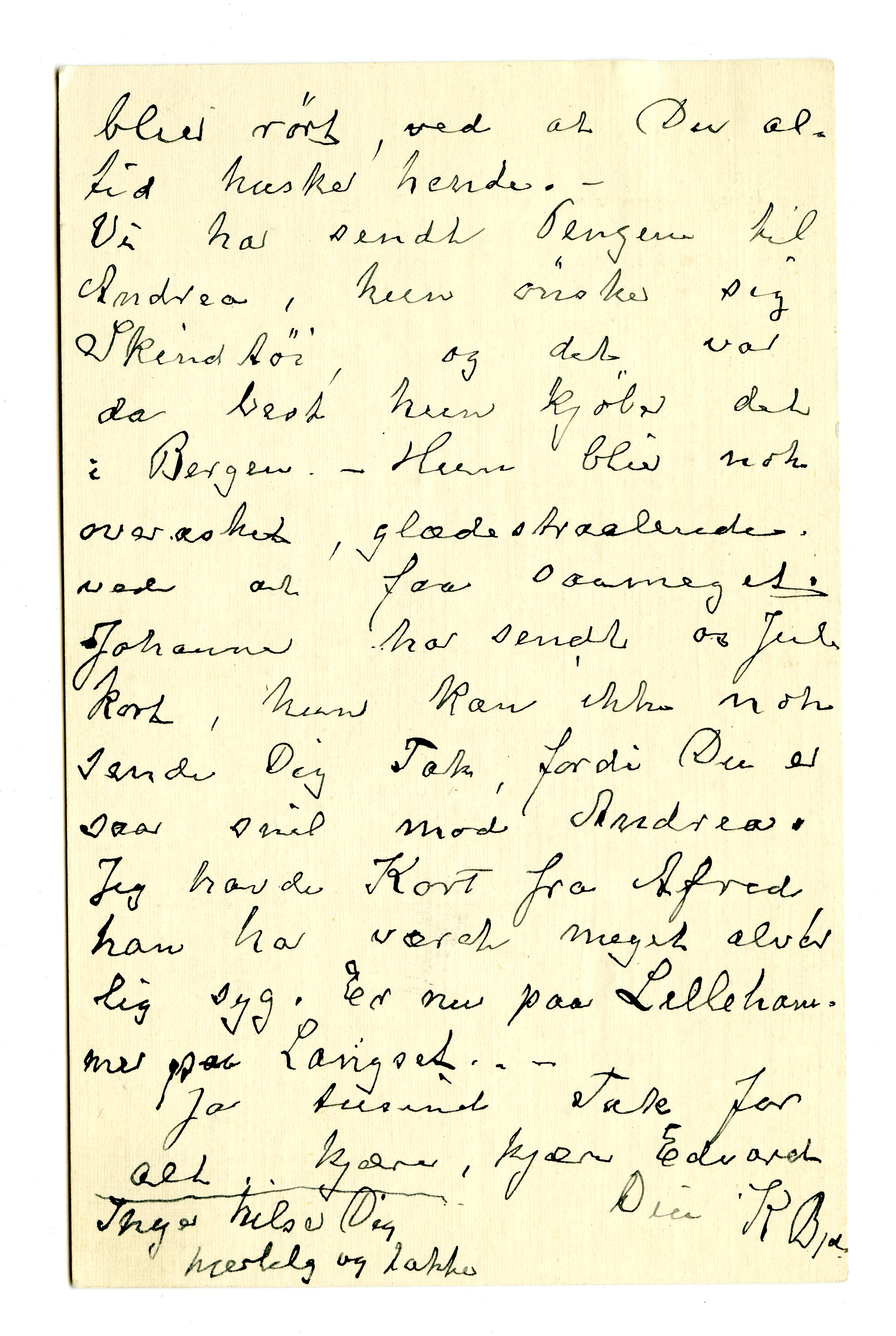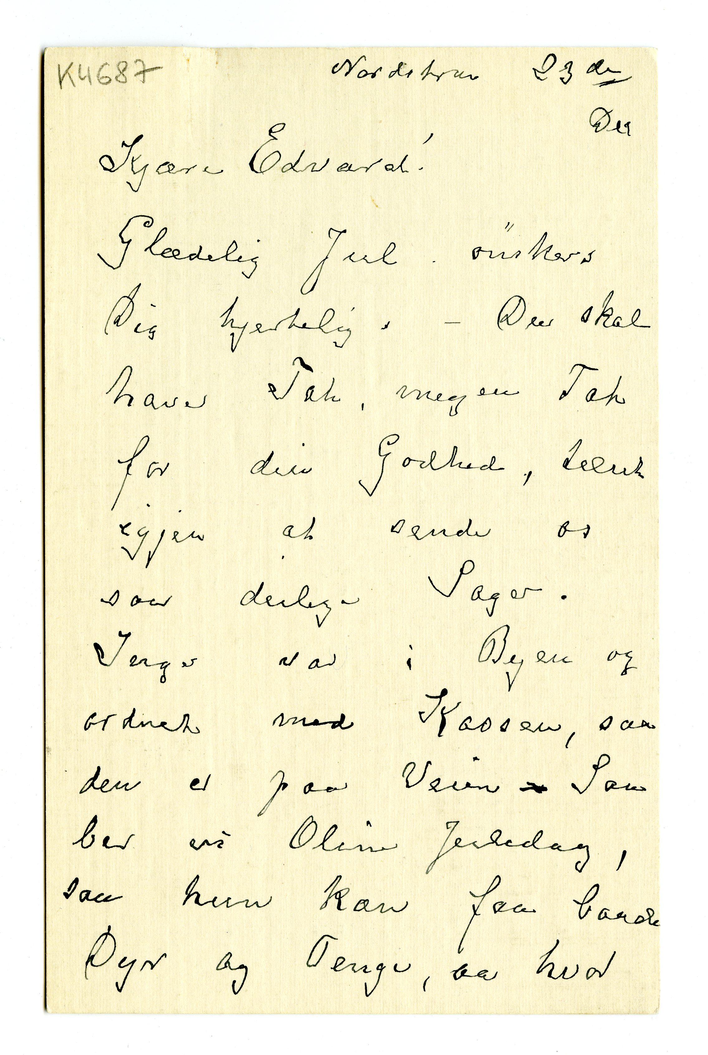 MM K 4687, Munchmuseet. Datert 23.12.1912. Brev fra Karen Bjølstad.