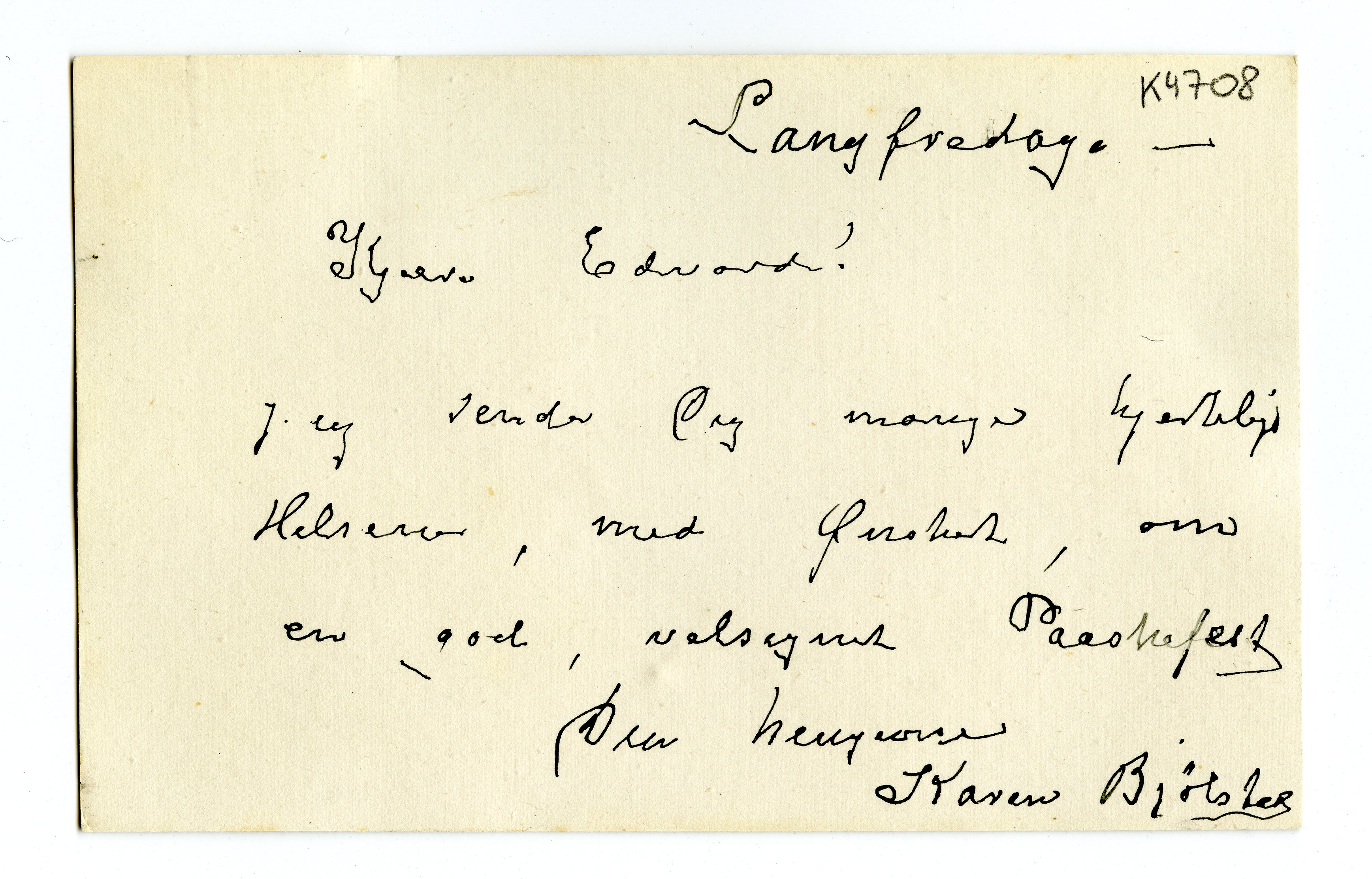 MM K 4708, Munchmuseet. Ikke datert. Brev fra Karen Bjølstad.