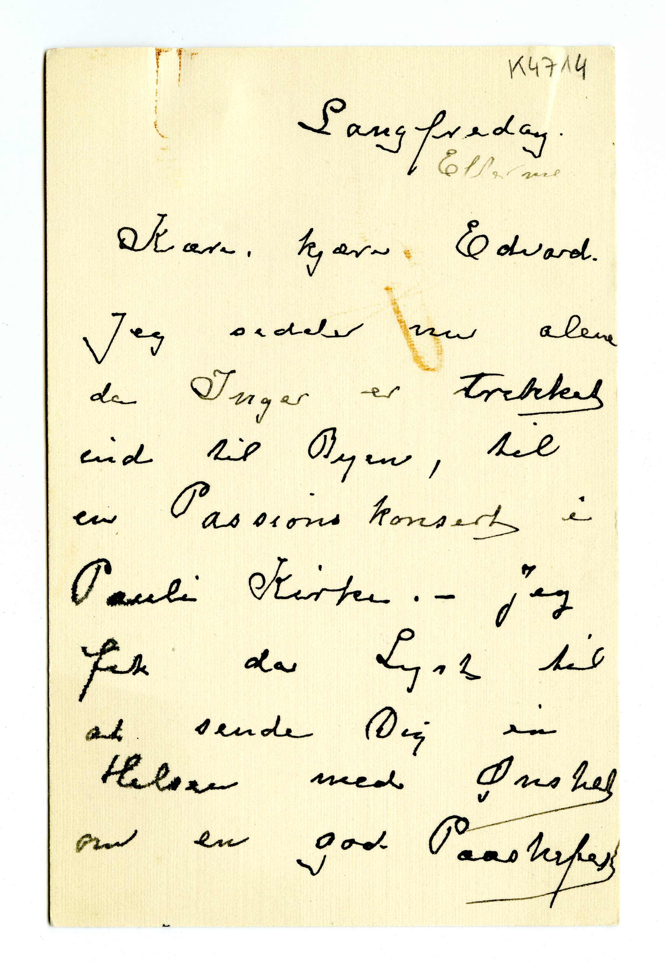 MM K 4714, Munchmuseet. Datert 18.04.1919. Brev fra Karen Bjølstad.
