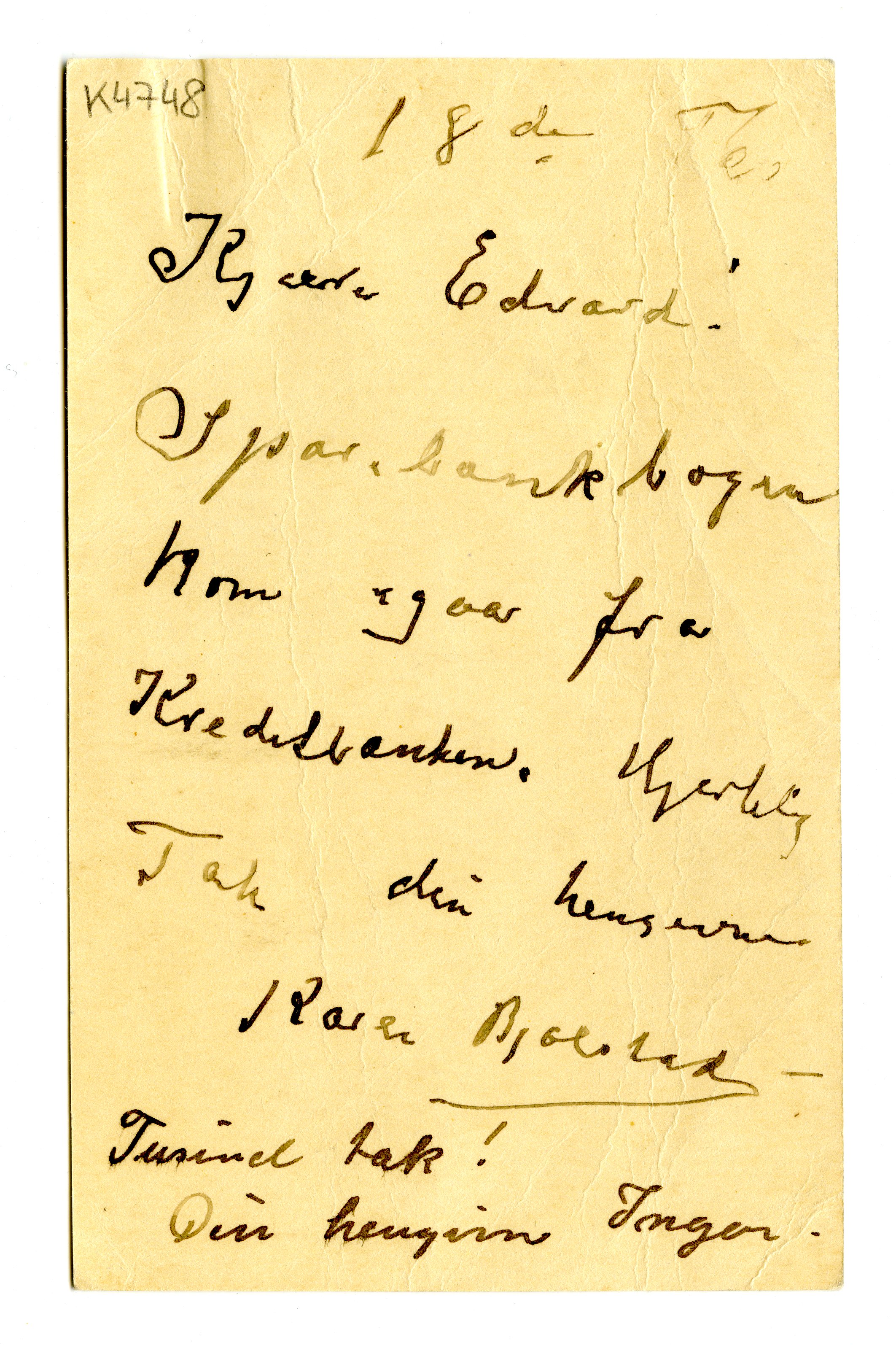 MM K 4748, Munchmuseet. Datert 18.02.[????]. Brev fra Karen Bjølstad.