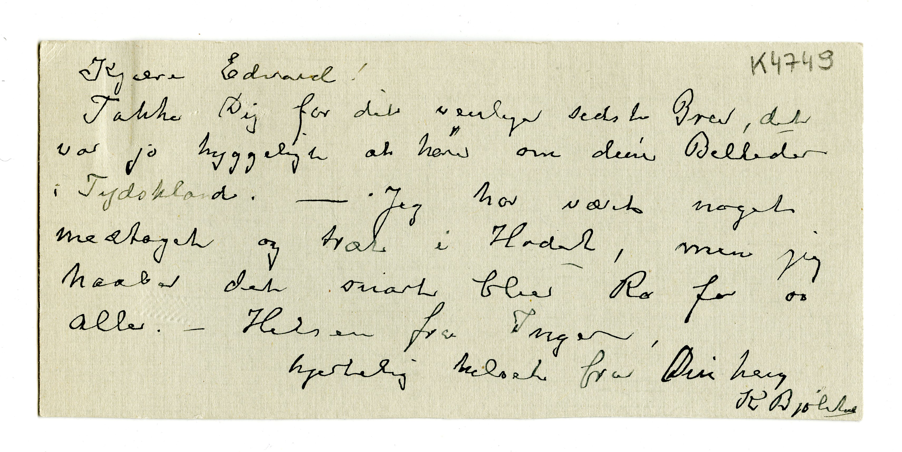 MM K 4749, Munchmuseet. Ikke datert. Brev fra Karen Bjølstad.