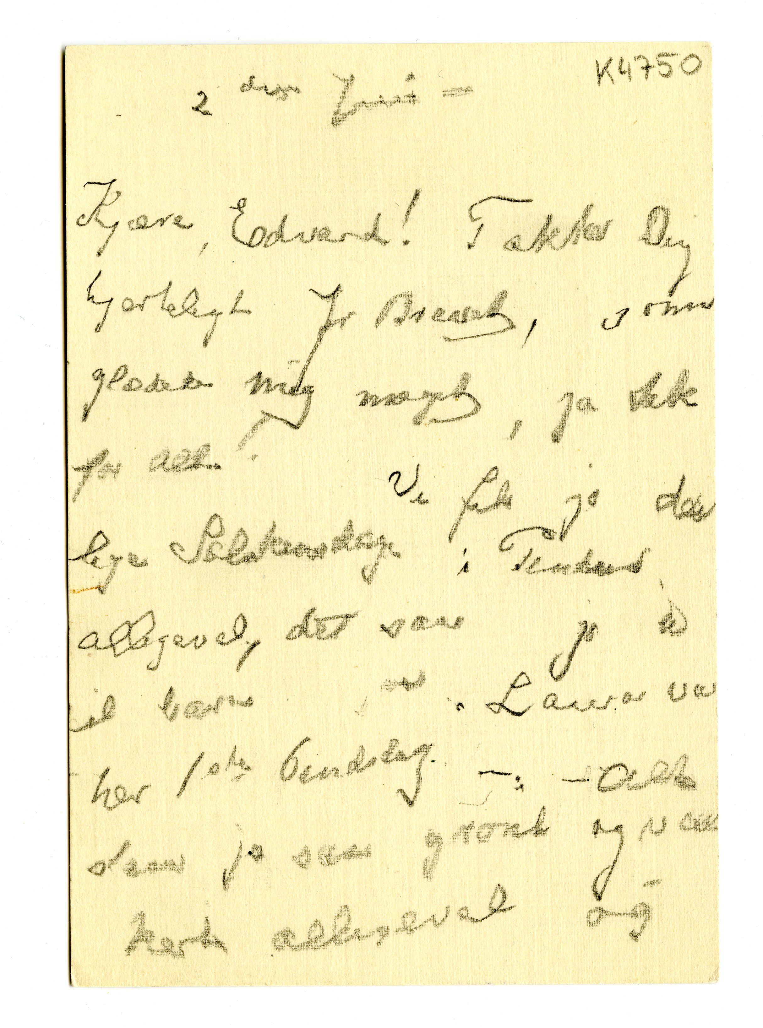 MM K 4750, Munchmuseet. Datert 02.06.1925. Brev fra Karen Bjølstad.
