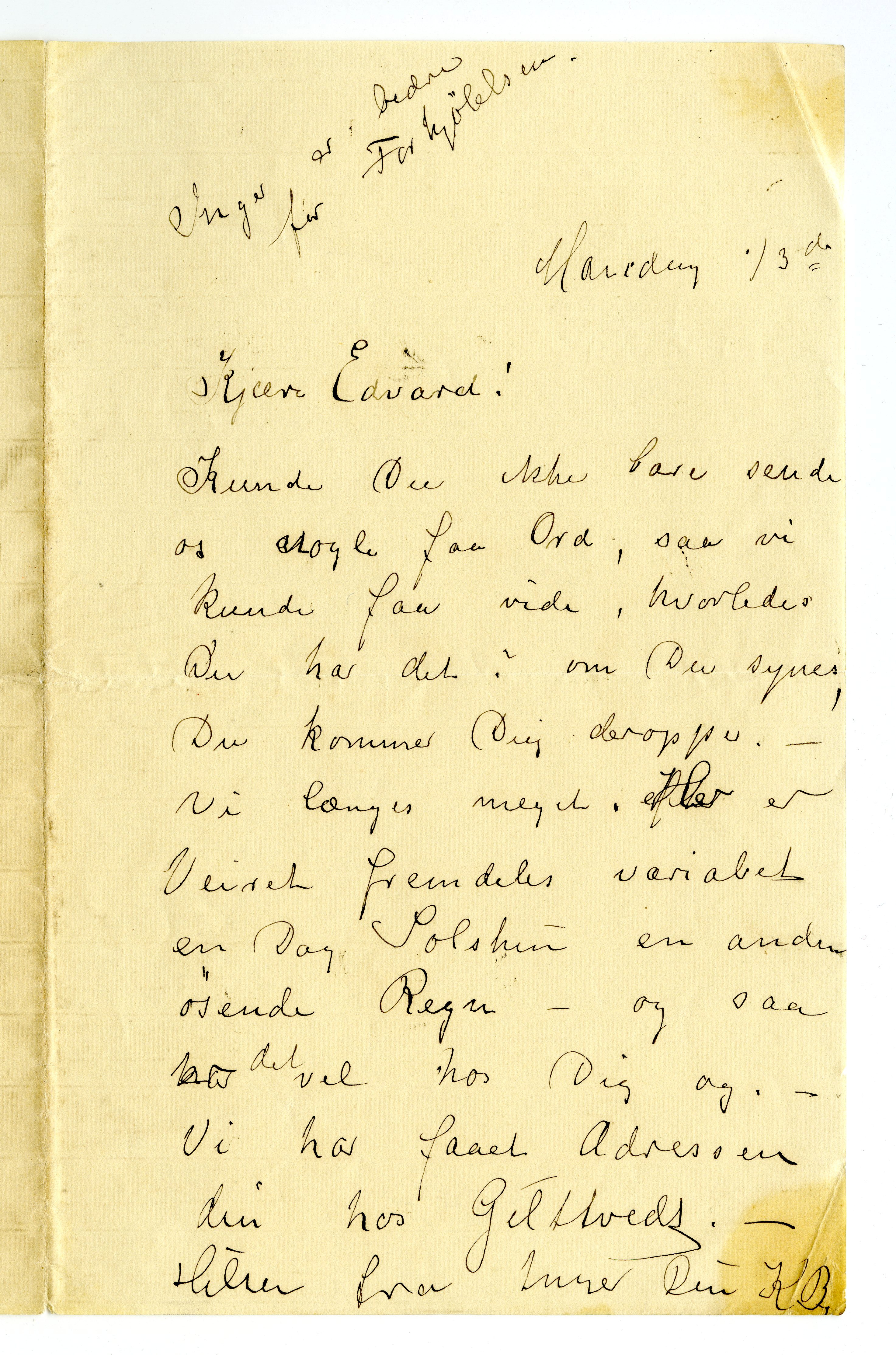 MM K 4765, Munchmuseet. Datert 13.11.1899. Brev fra Karen Bjølstad.