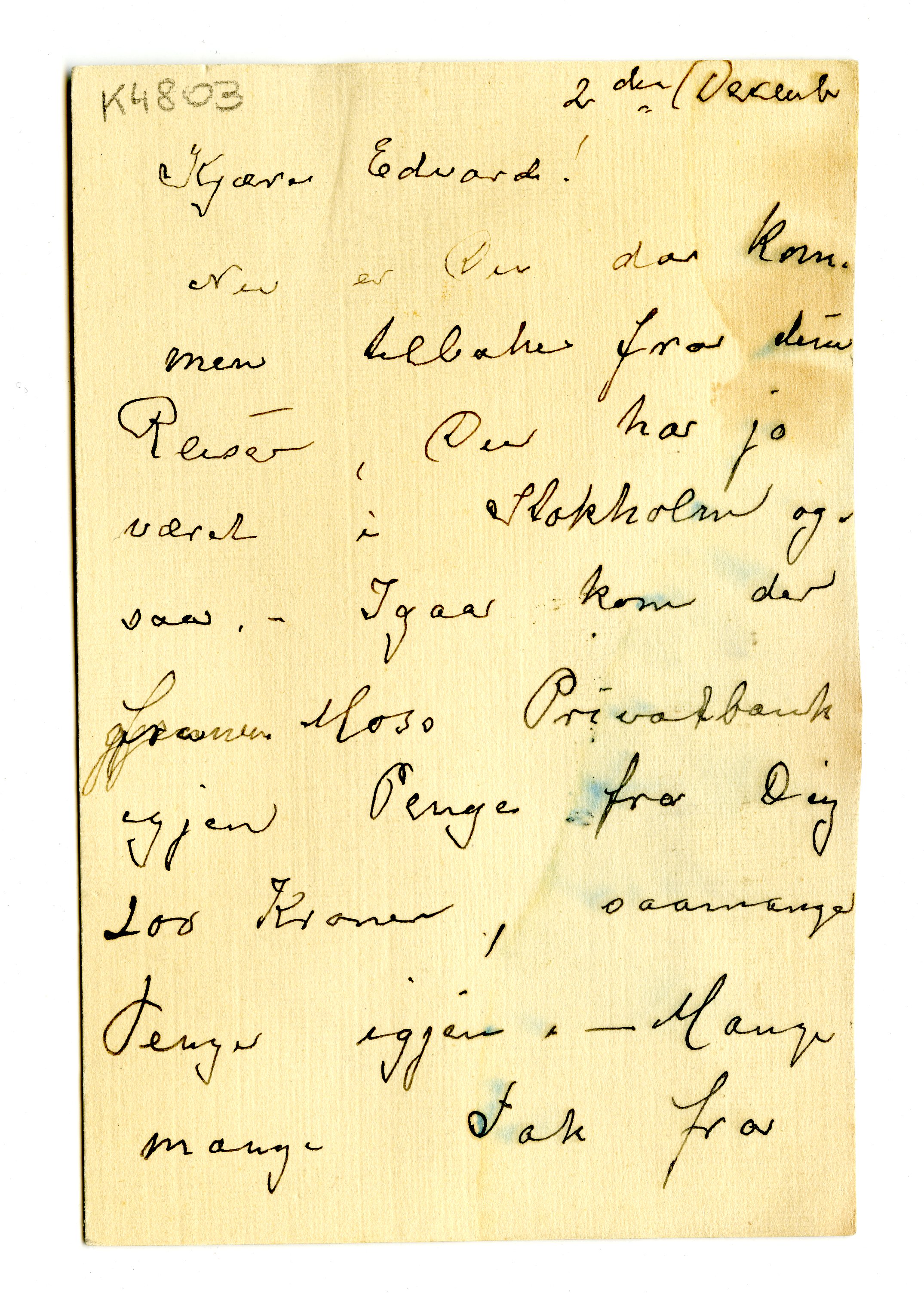 MM K 4803, Munchmuseet. Datert 02.12.1916. Brev fra Karen Bjølstad.