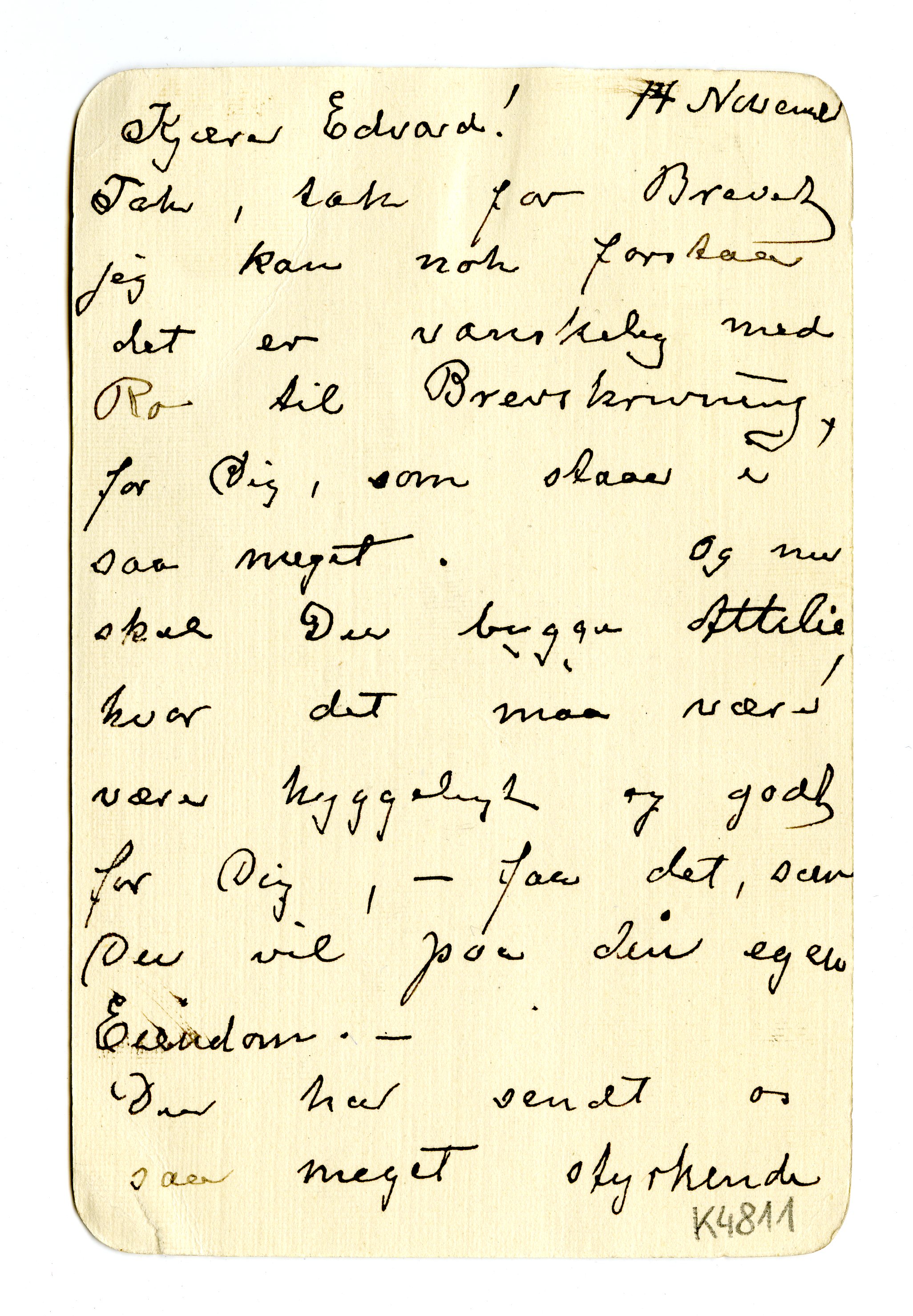 MM K 4811, Munchmuseet. Datert 14.11.1916. Brev fra Karen Bjølstad.