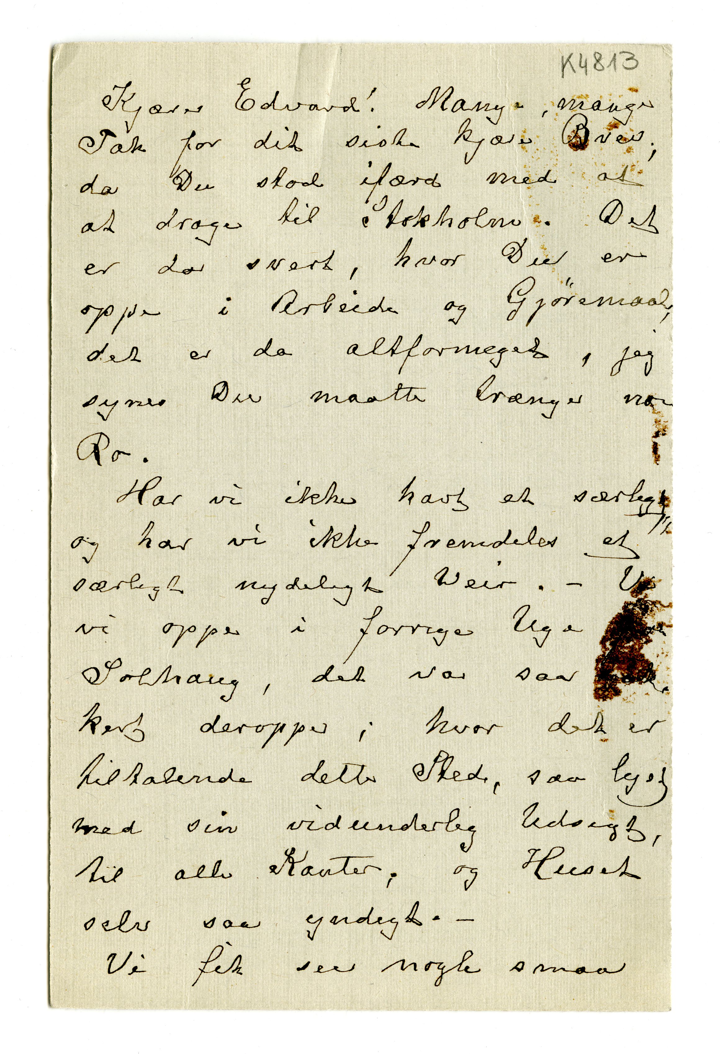 MM K 4813, Munchmuseet. Datert 1913. Brev fra Karen Bjølstad.