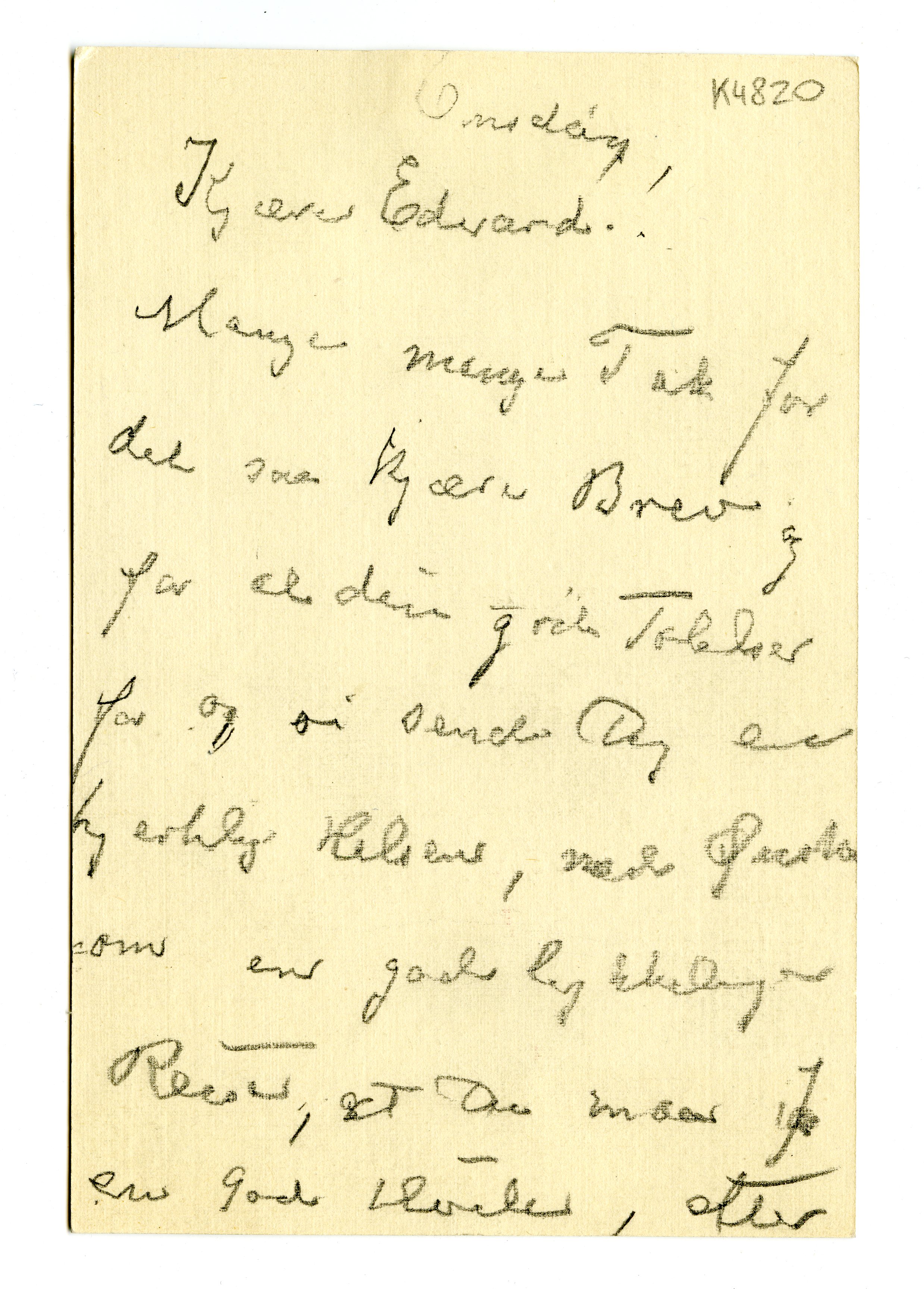 MM K 4820, Munchmuseet. Ikke datert. Brev fra Karen Bjølstad.