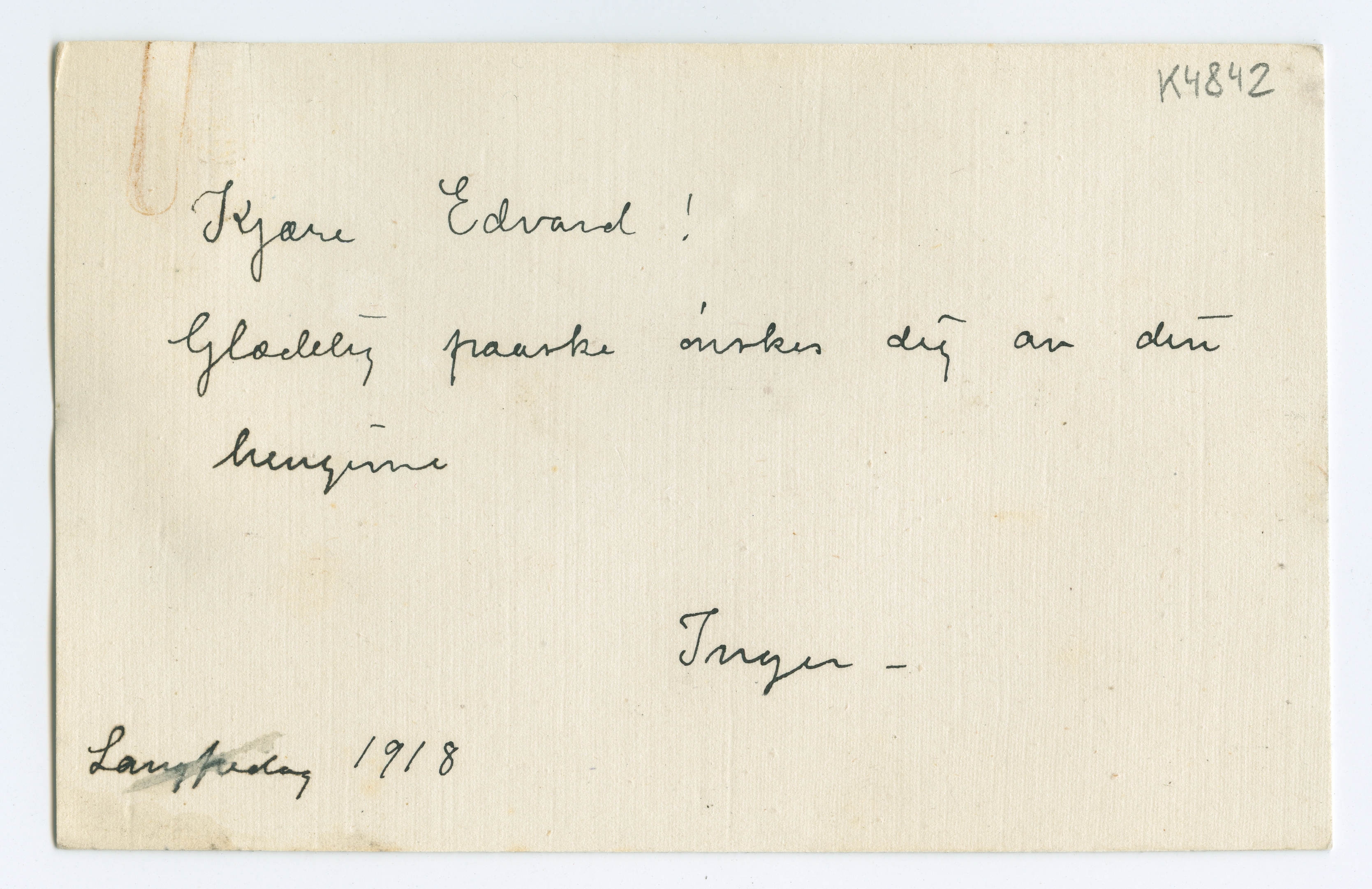MM K 4842, Munchmuseet. Datert 29.03.1918. Brev fra Inger Munch.