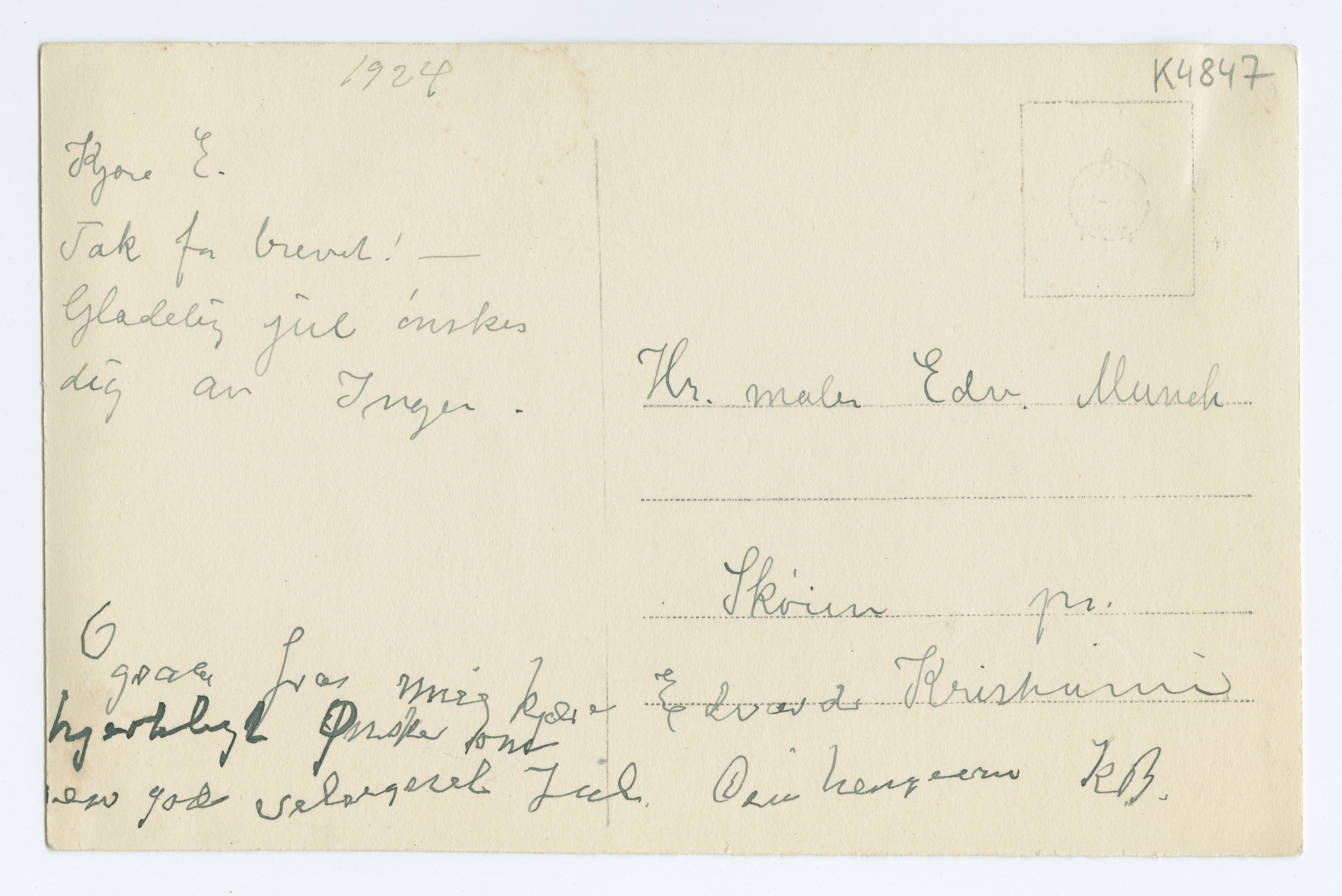 MM K 4847, Munchmuseet. Datert [??].12.1924. Brev fra Inger Munch, Karen Bjølstad.
