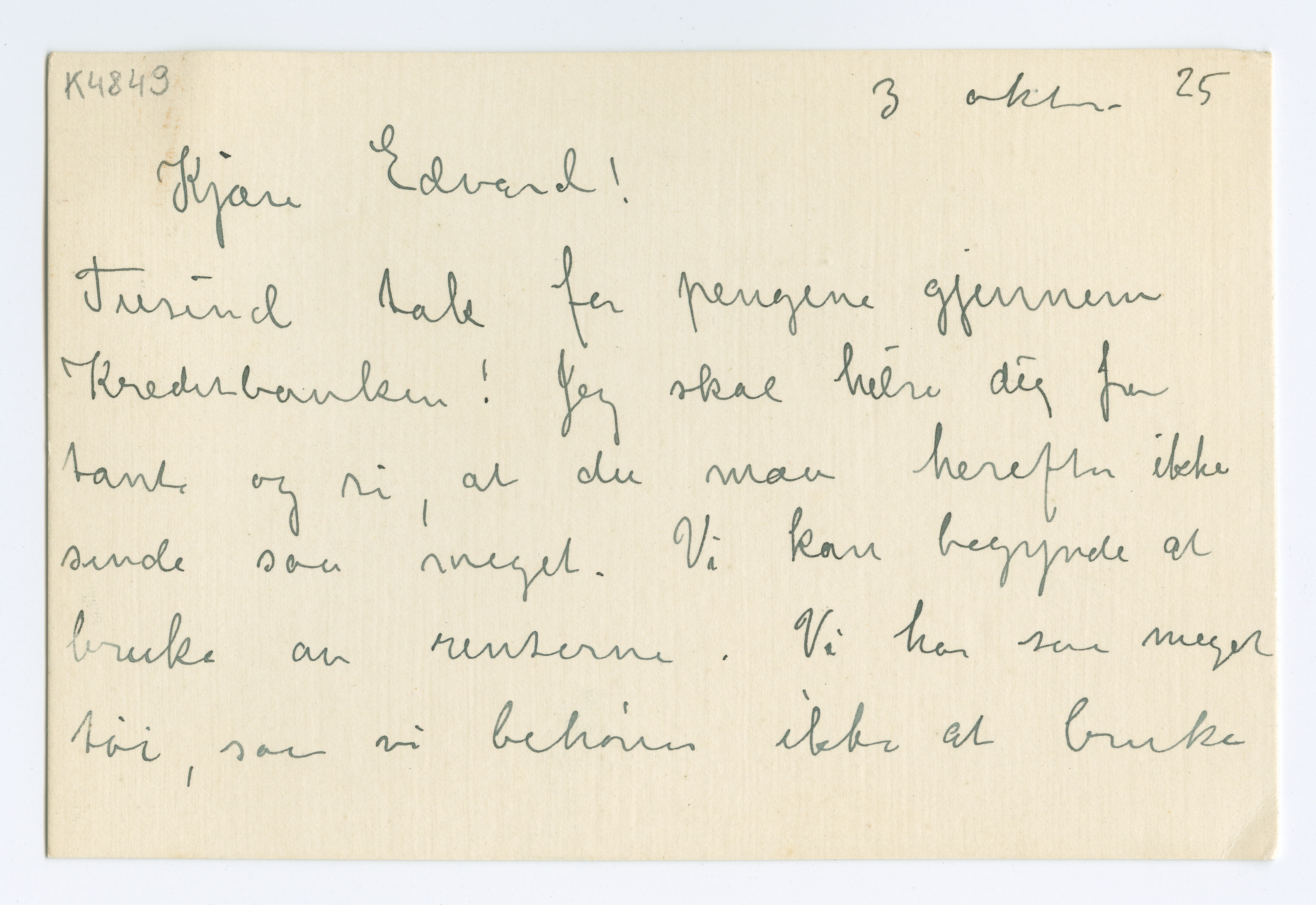 MM K 4849, Munchmuseet. Datert 03.10.1925. Brev fra Inger Munch.
