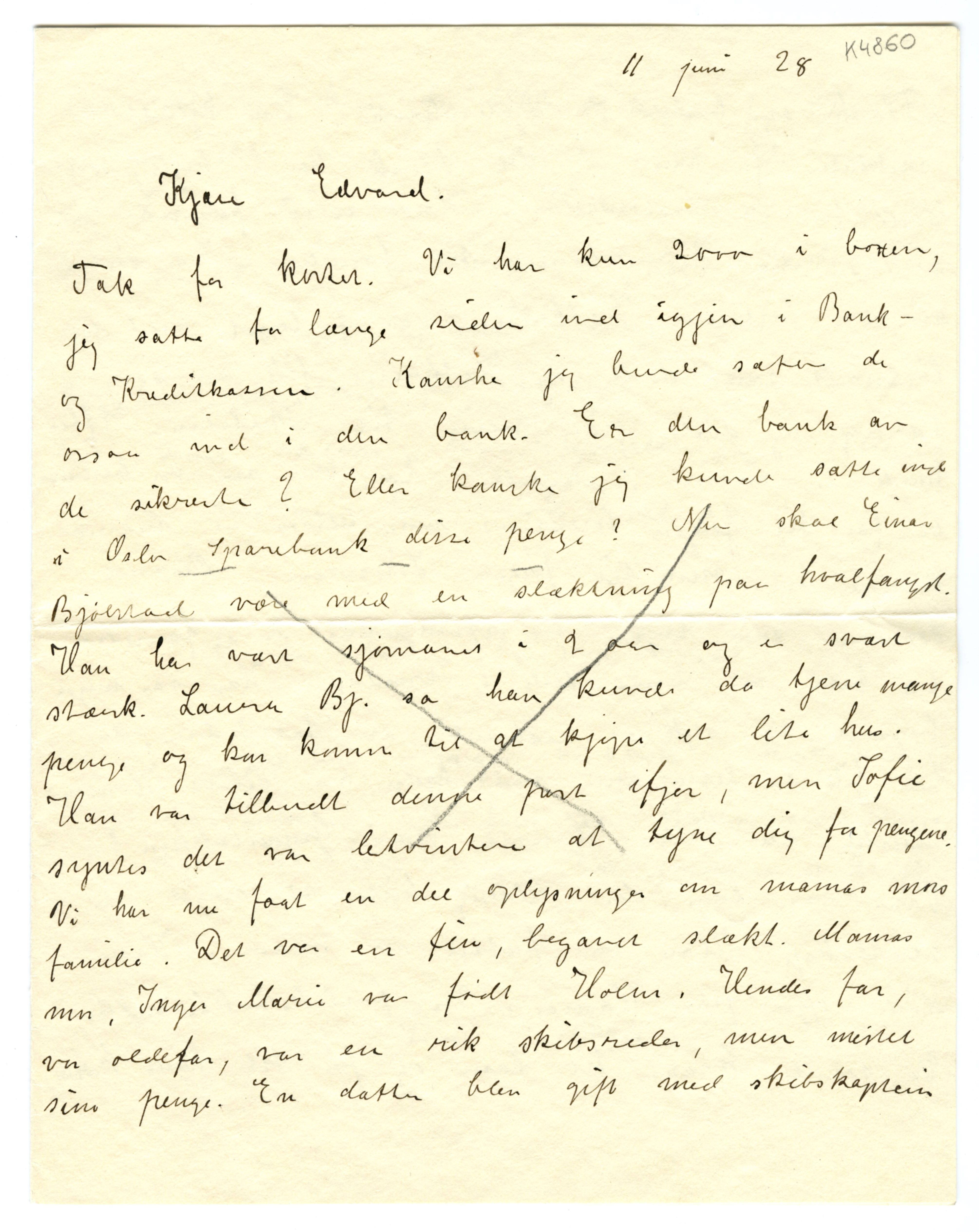 MM K 4860, Munchmuseet. Datert 11.06.1928. Brev fra Inger Munch.