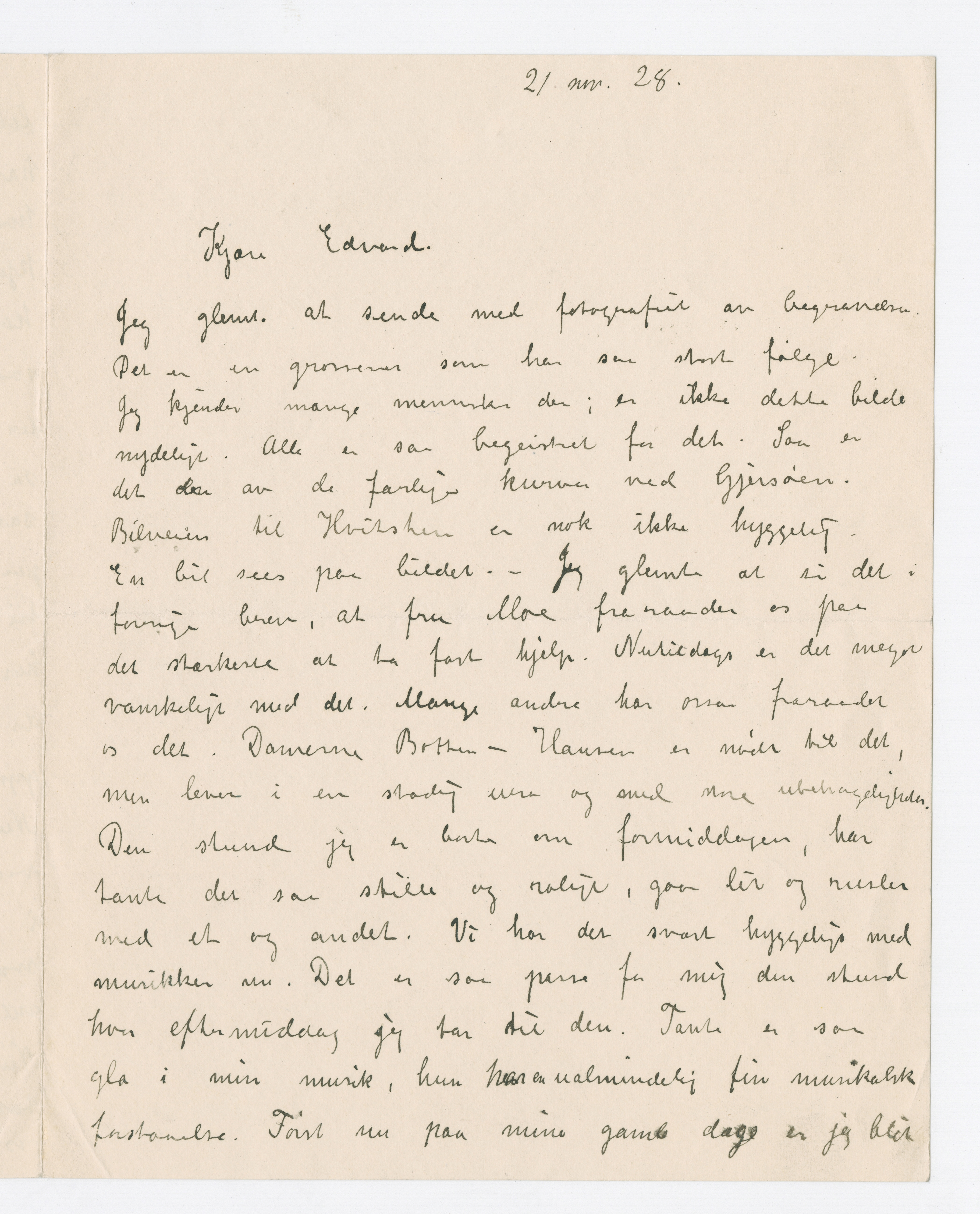 MM K 4864, Munchmuseet. Datert 21.11.1928. Brev fra Inger Munch.