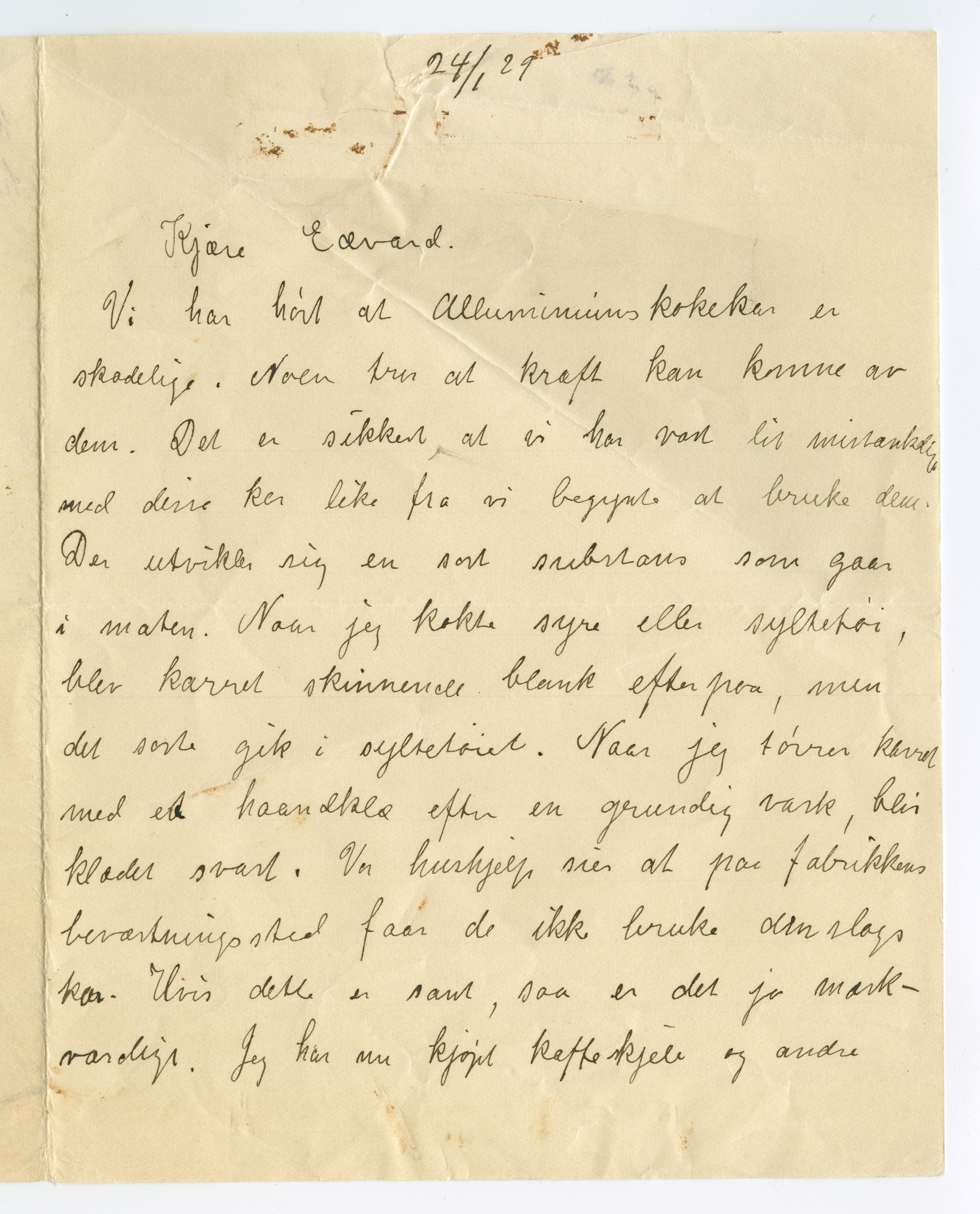 MM K 4865, Munchmuseet. Datert 24.01.1929. Brev fra Inger Munch.