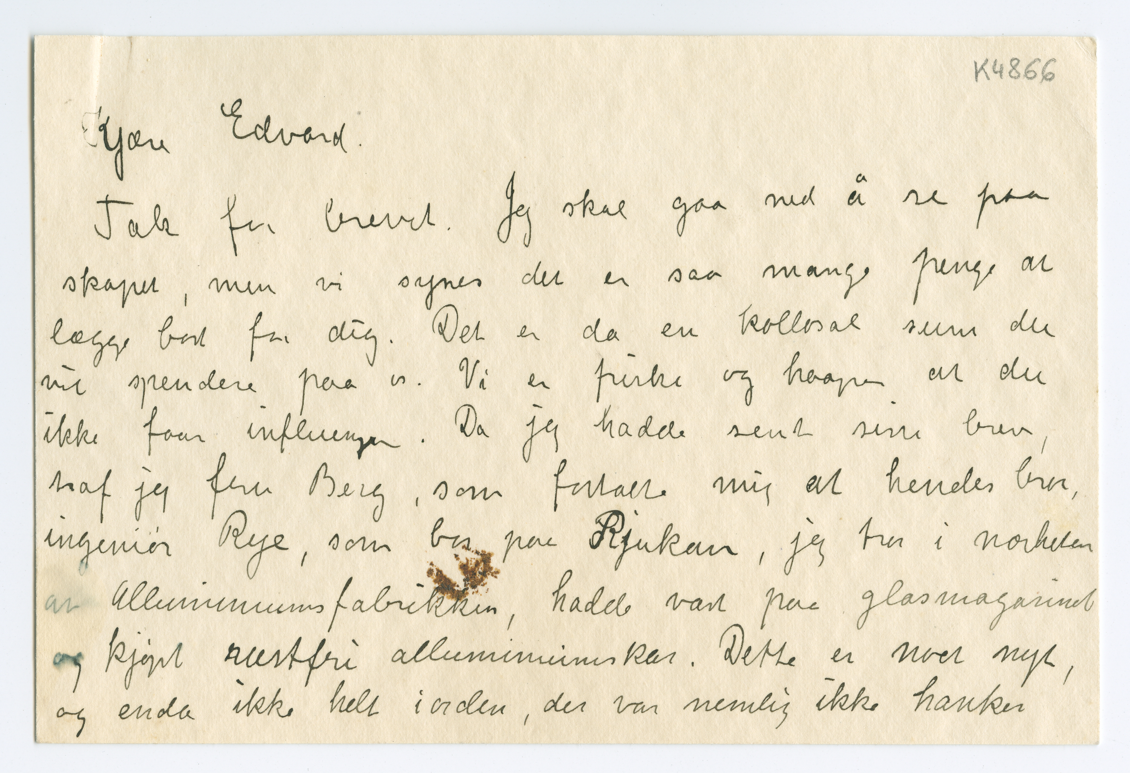 MM K 4866, Munchmuseet. Datert 01.02.1929. Brev fra Inger Munch.