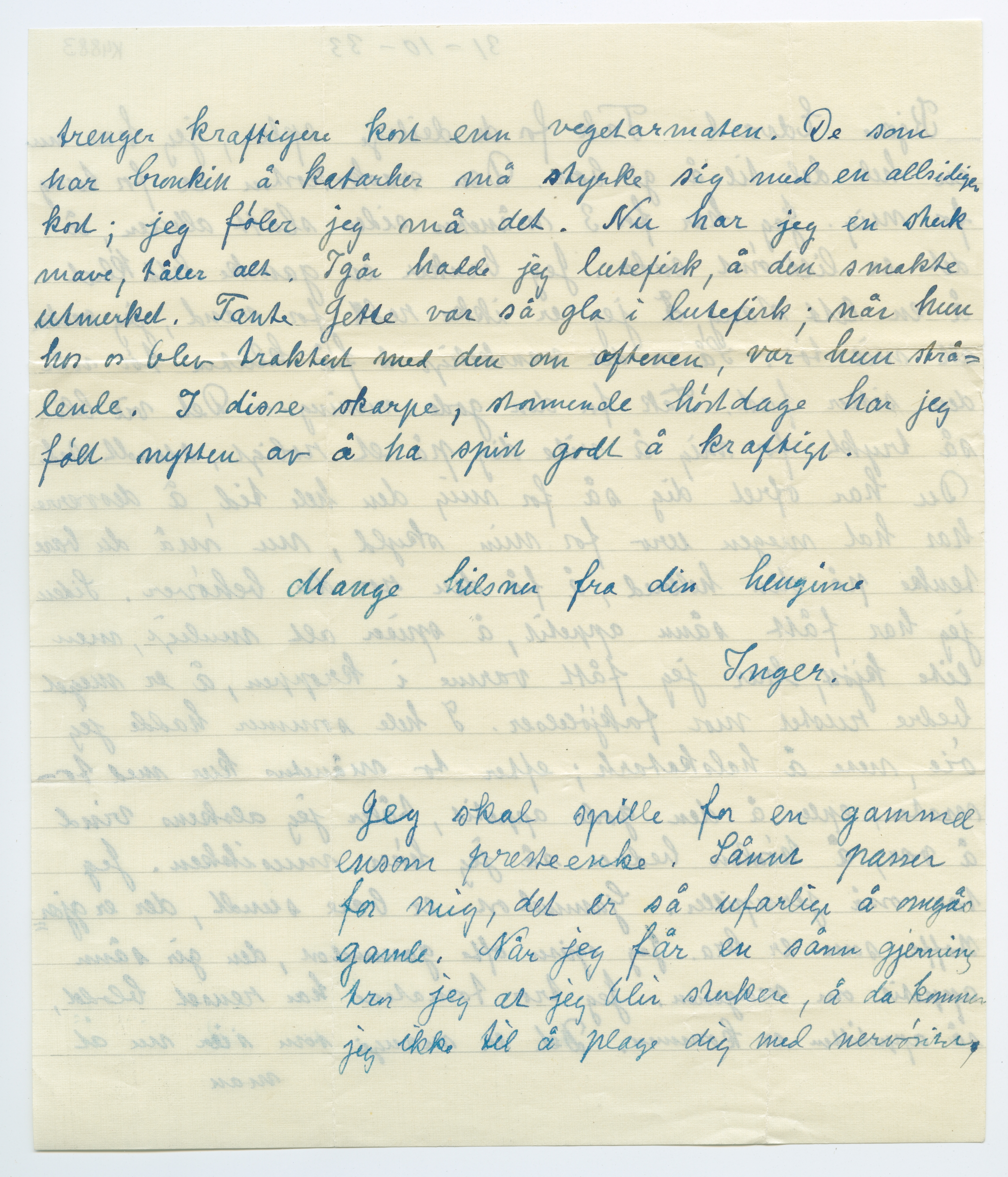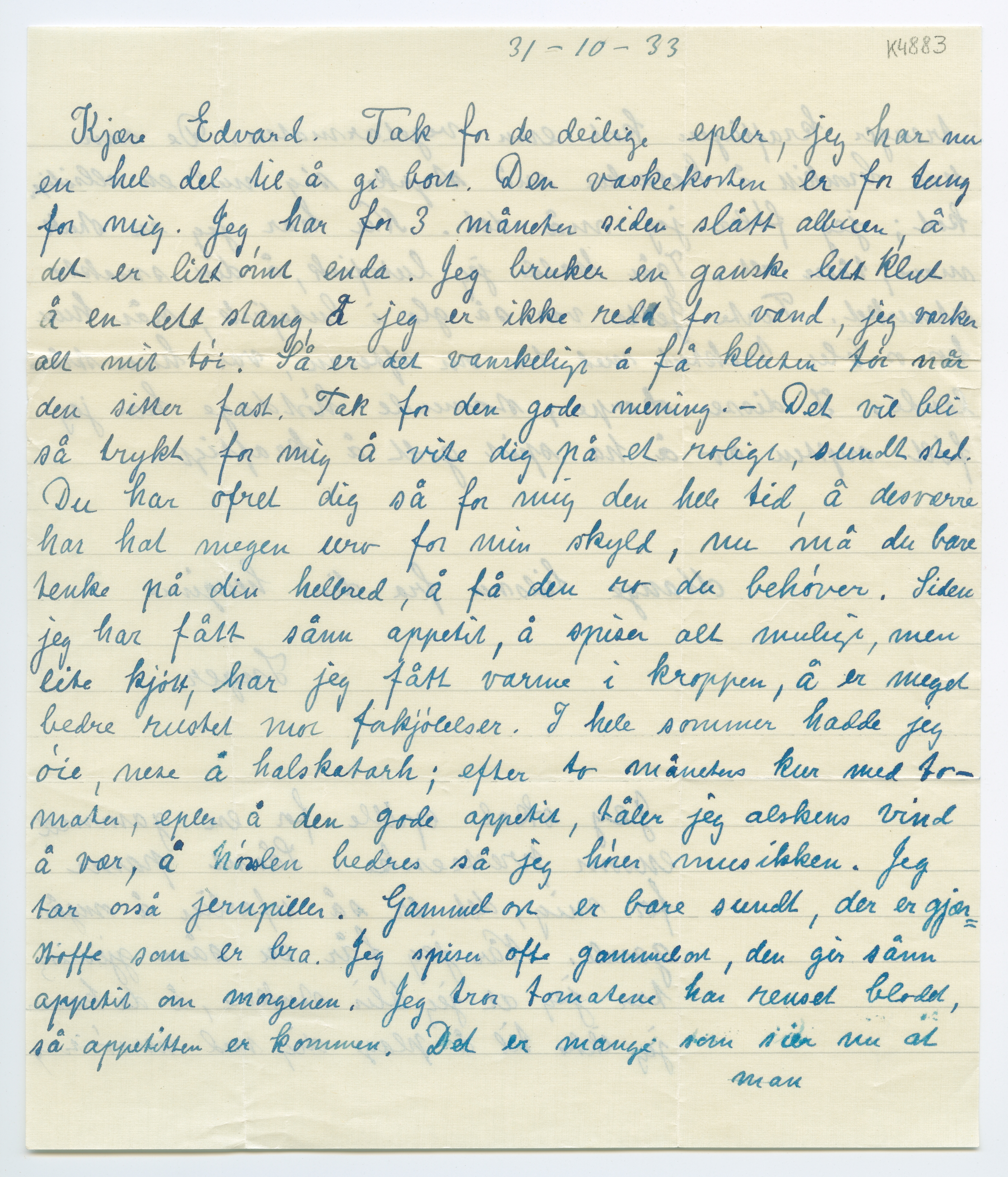 MM K 4883, Munchmuseet. Datert 31.10.1933. Brev fra Inger Munch.