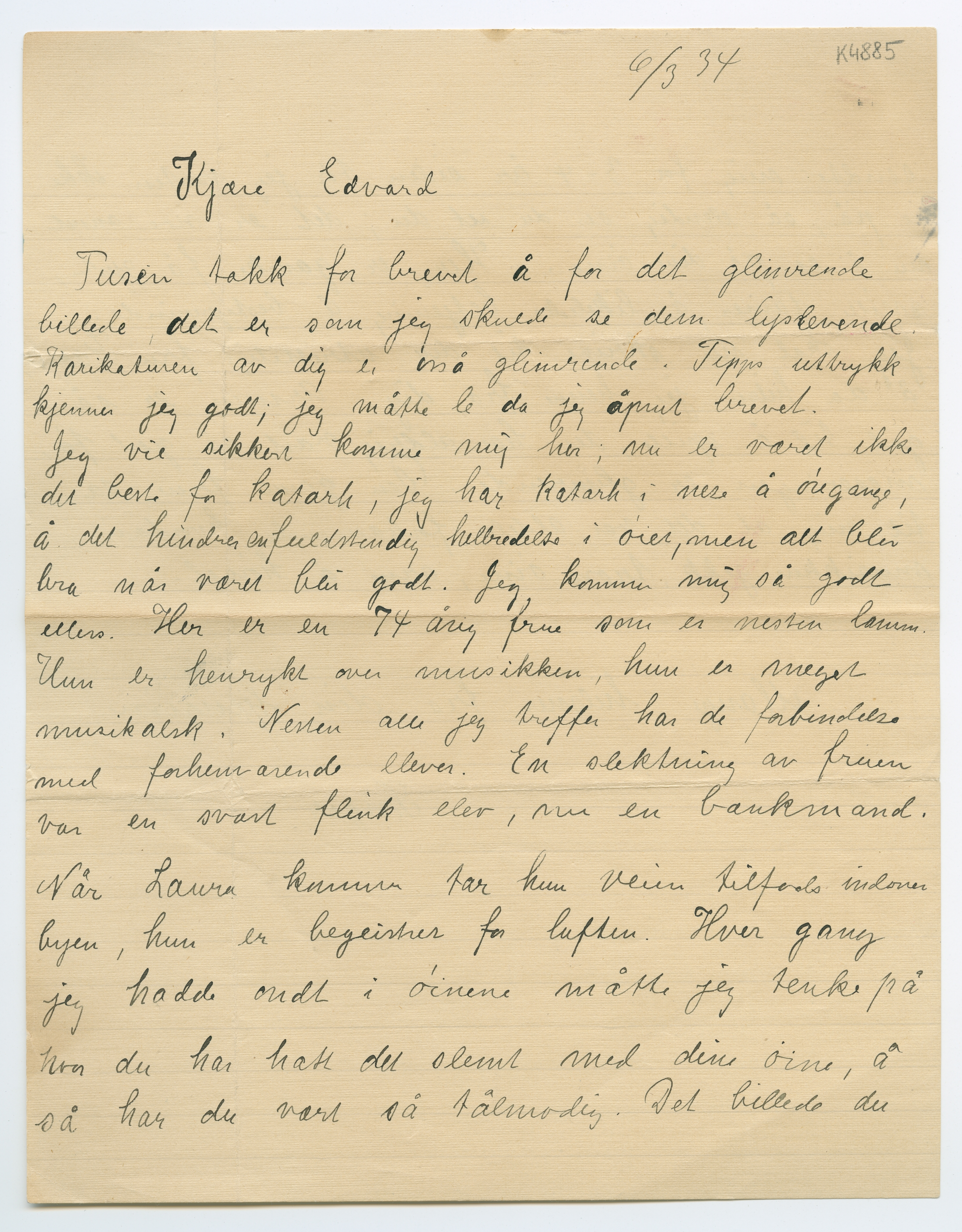 MM K 4885, Munchmuseet. Datert 06.03.1934. Brev fra Inger Munch.