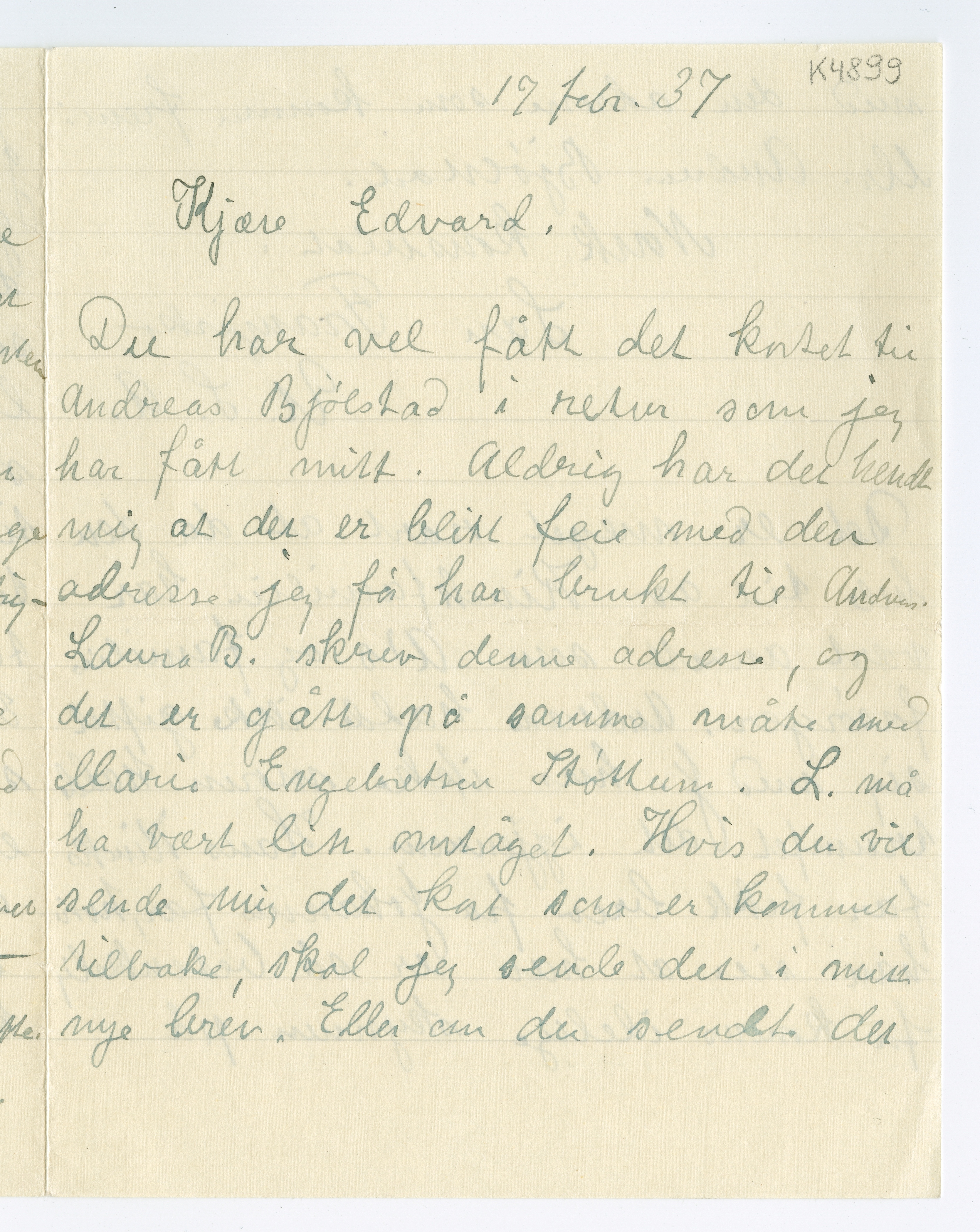 MM K 4899, Munchmuseet. Datert 17.02.1937. Brev fra Inger Munch.