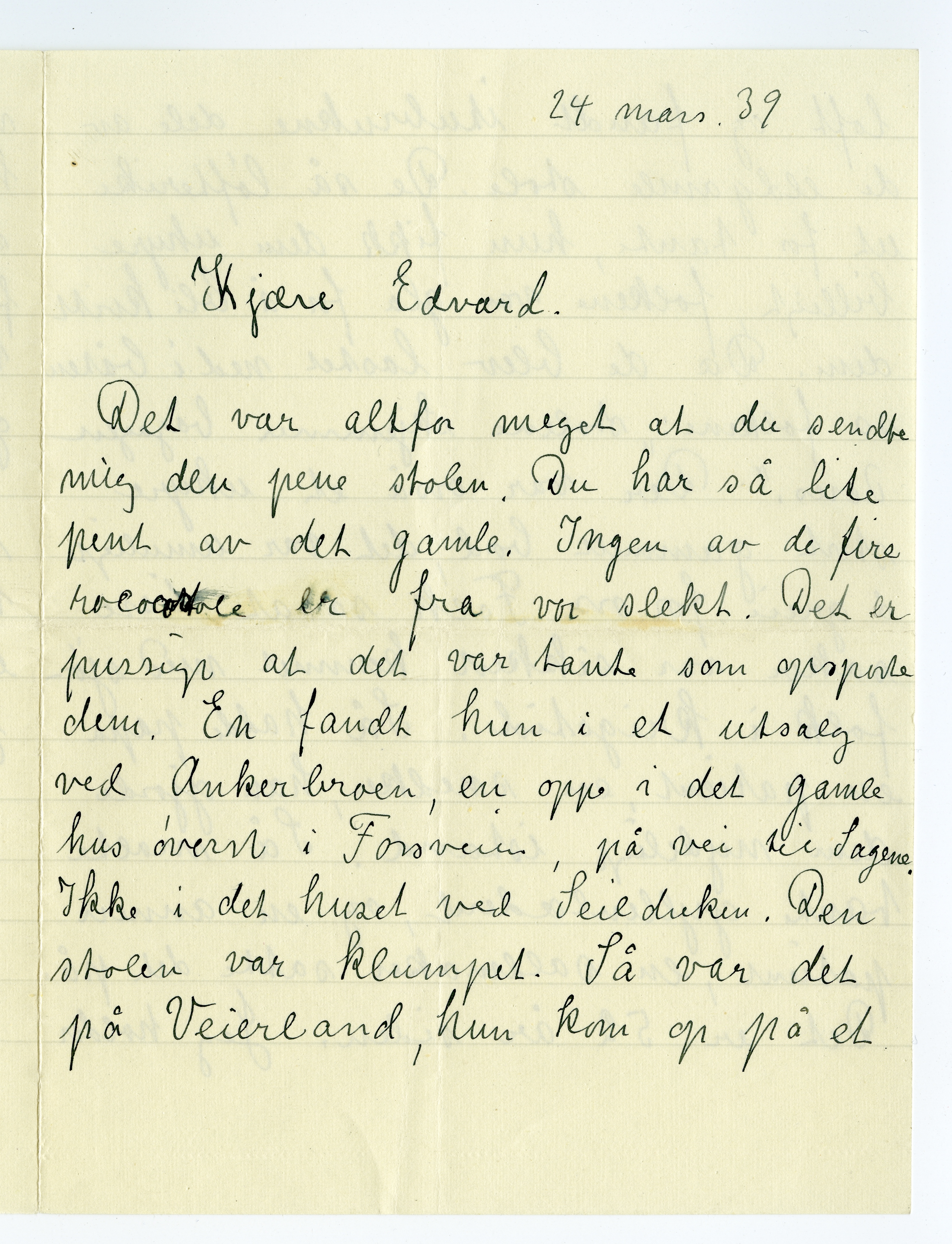 MM K 4911, Munchmuseet. Datert 24.03.1939. Brev fra Inger Munch.
