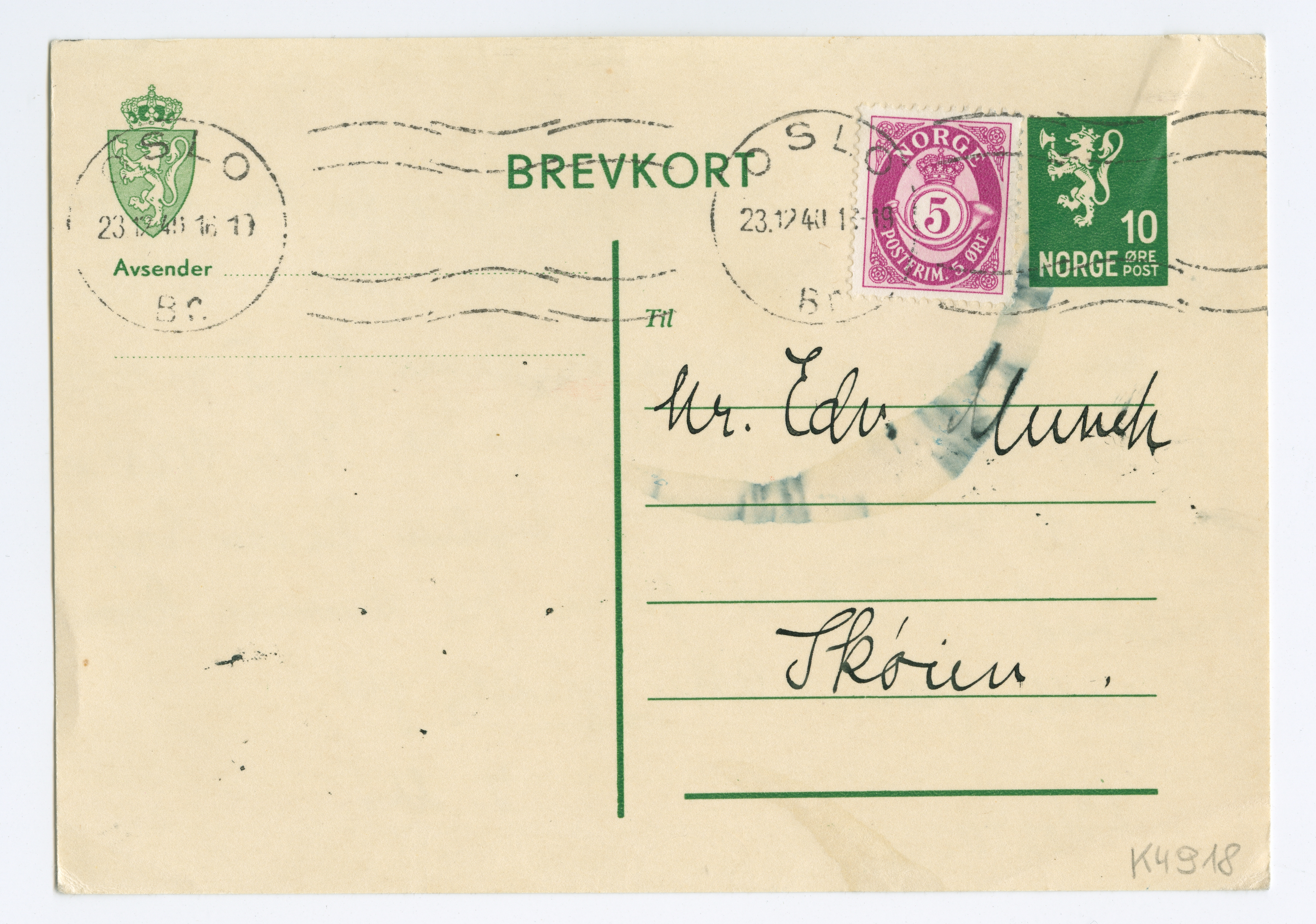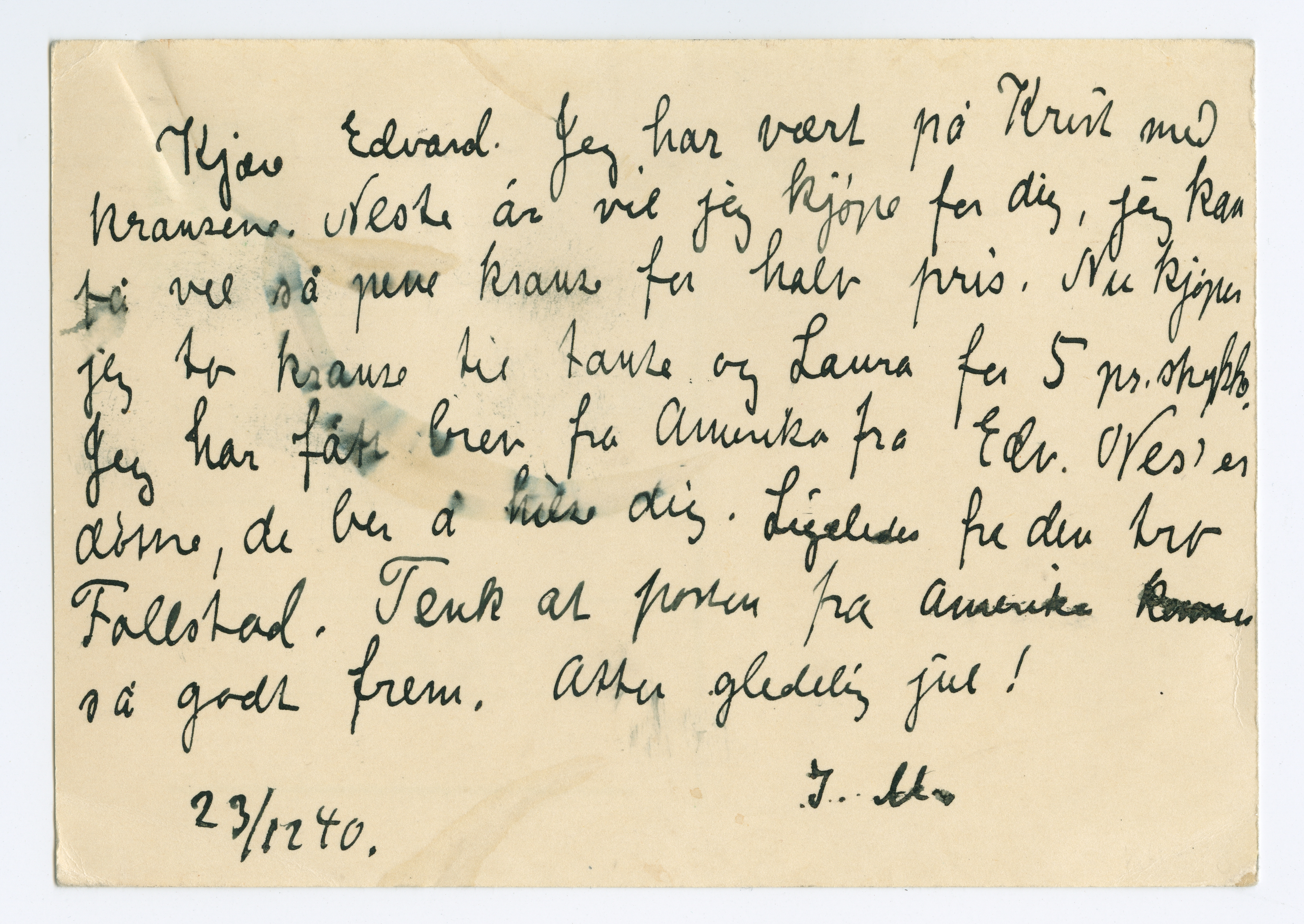 MM K 4918, Munchmuseet. Datert 23.12.1940. Brev fra Inger Munch.