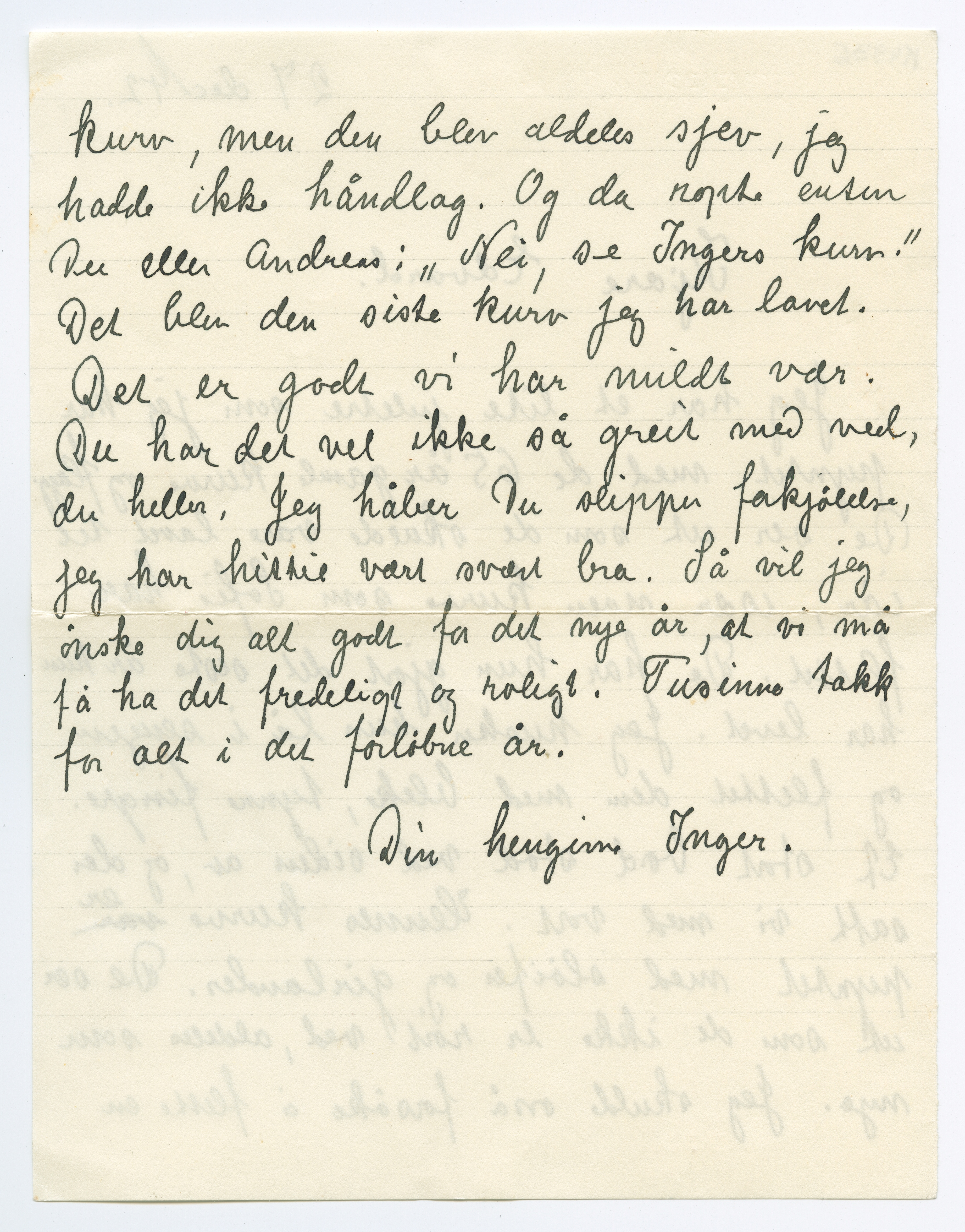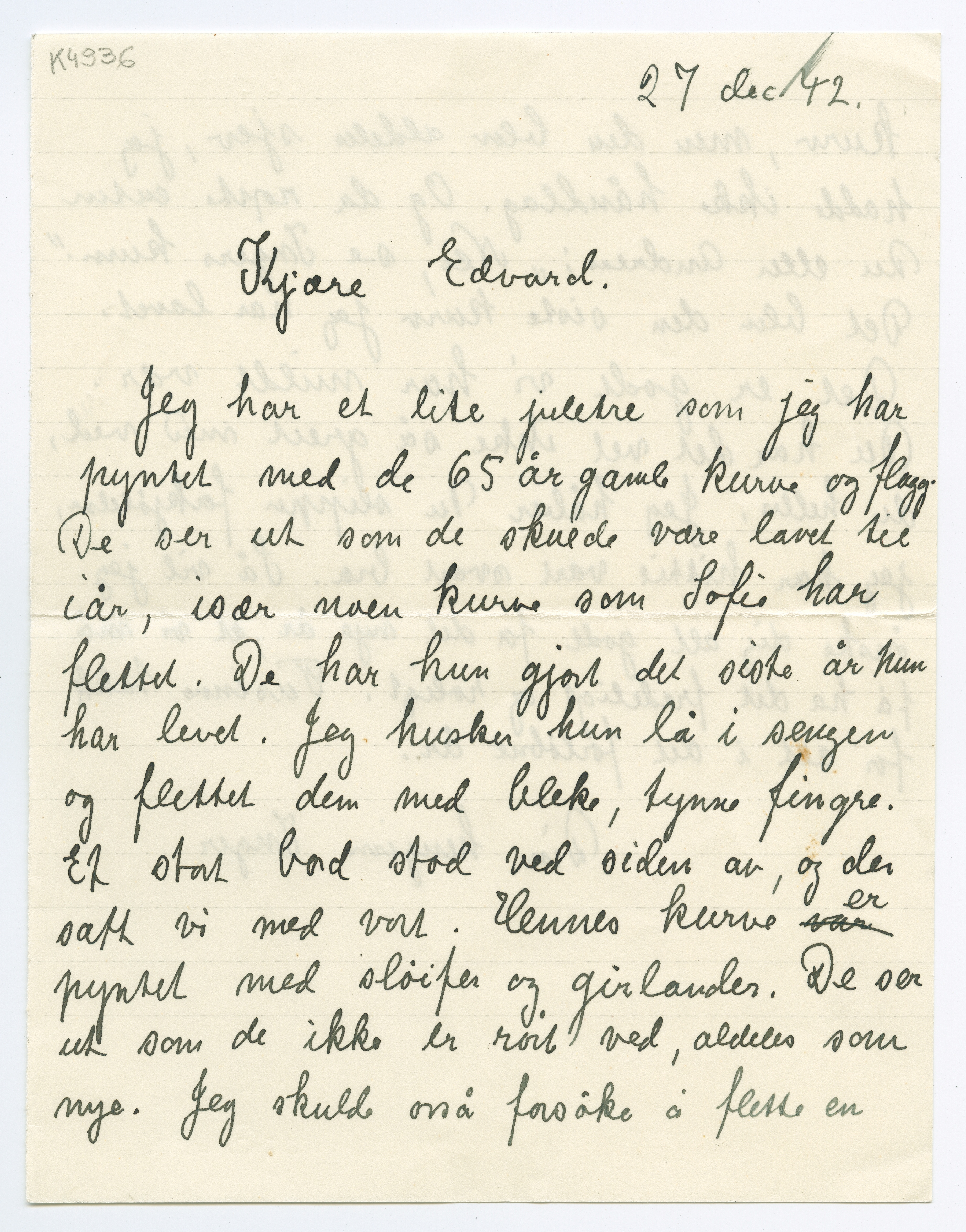 MM K 4936, Munchmuseet. Datert 27.12.1942. Brev fra Inger Munch.