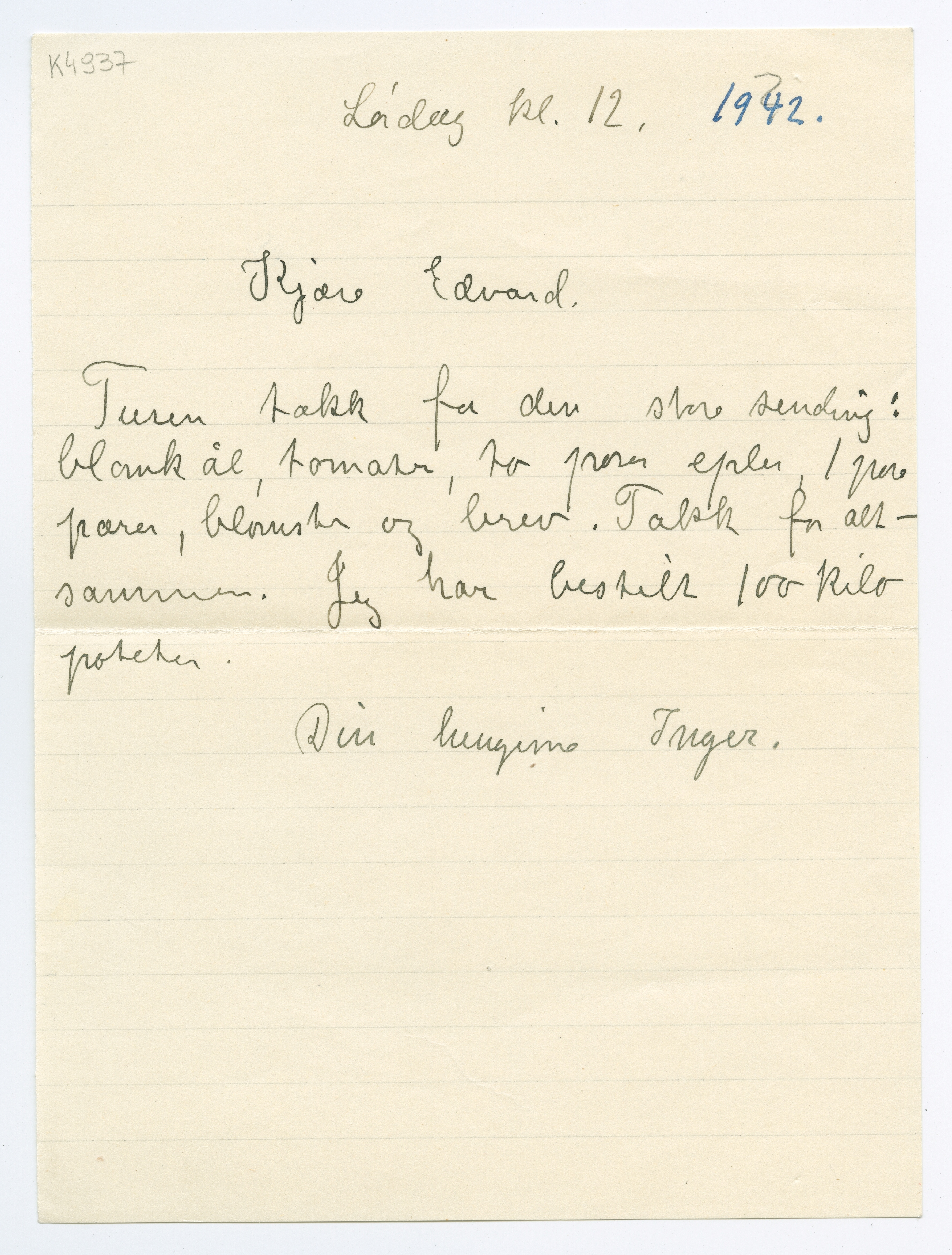 MM K 4937, Munchmuseet. Datert [??].[??].1942. Brev fra Inger Munch.