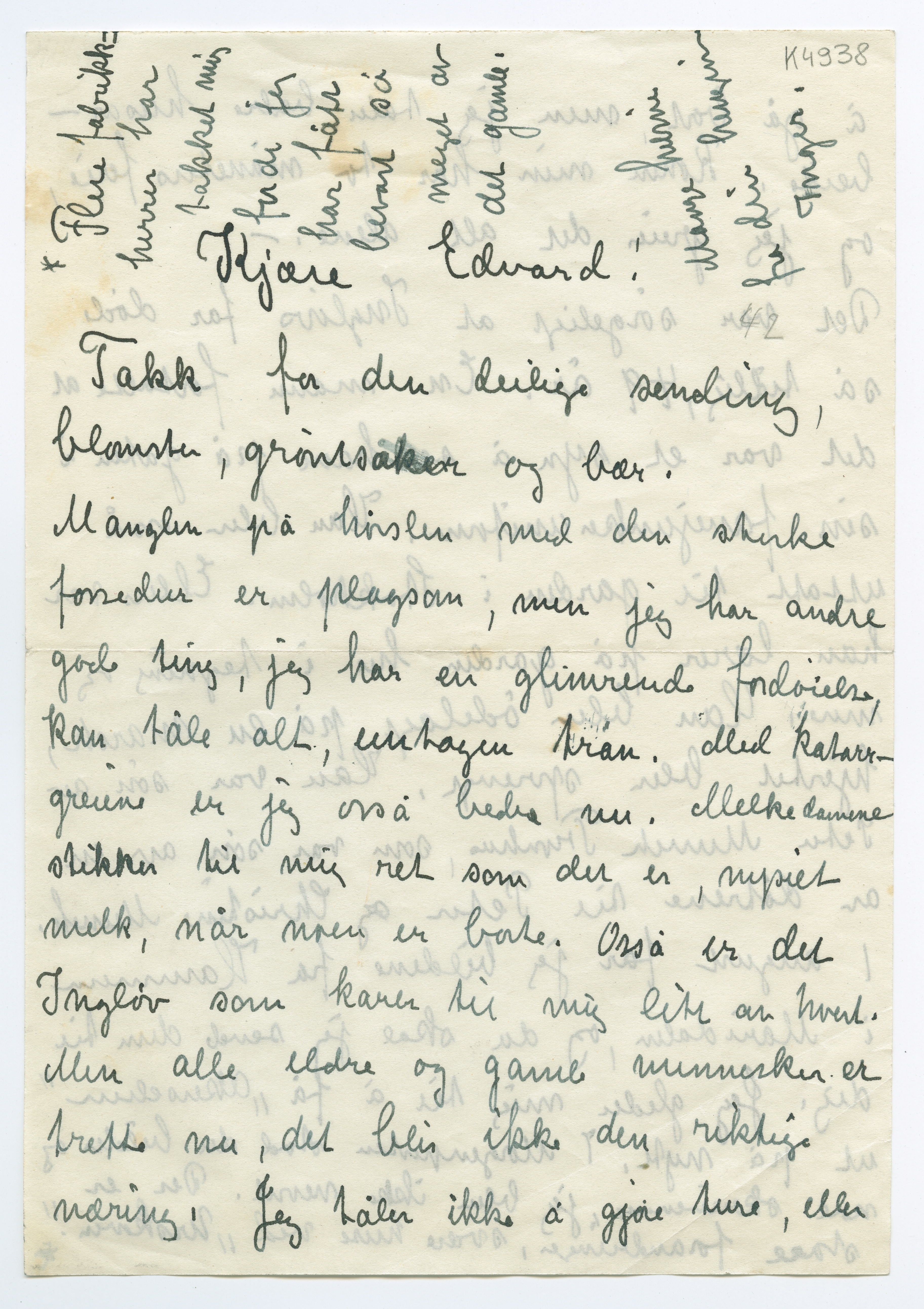 MM K 4938, Munchmuseet. Datert [??].[??].1942. Brev fra Inger Munch.