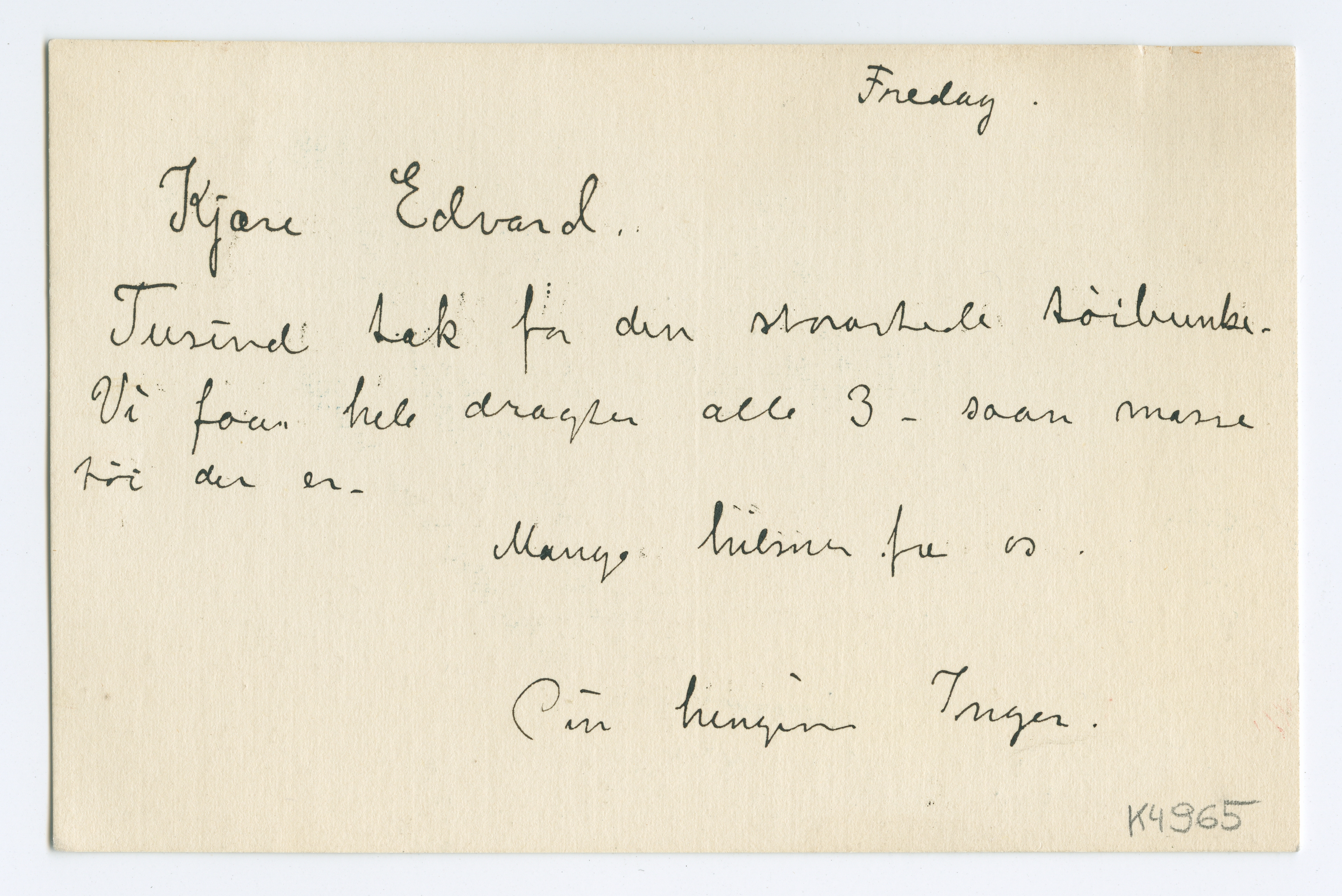 MM K 4965, Munchmuseet. Ikke datert. Brev fra Inger Munch.