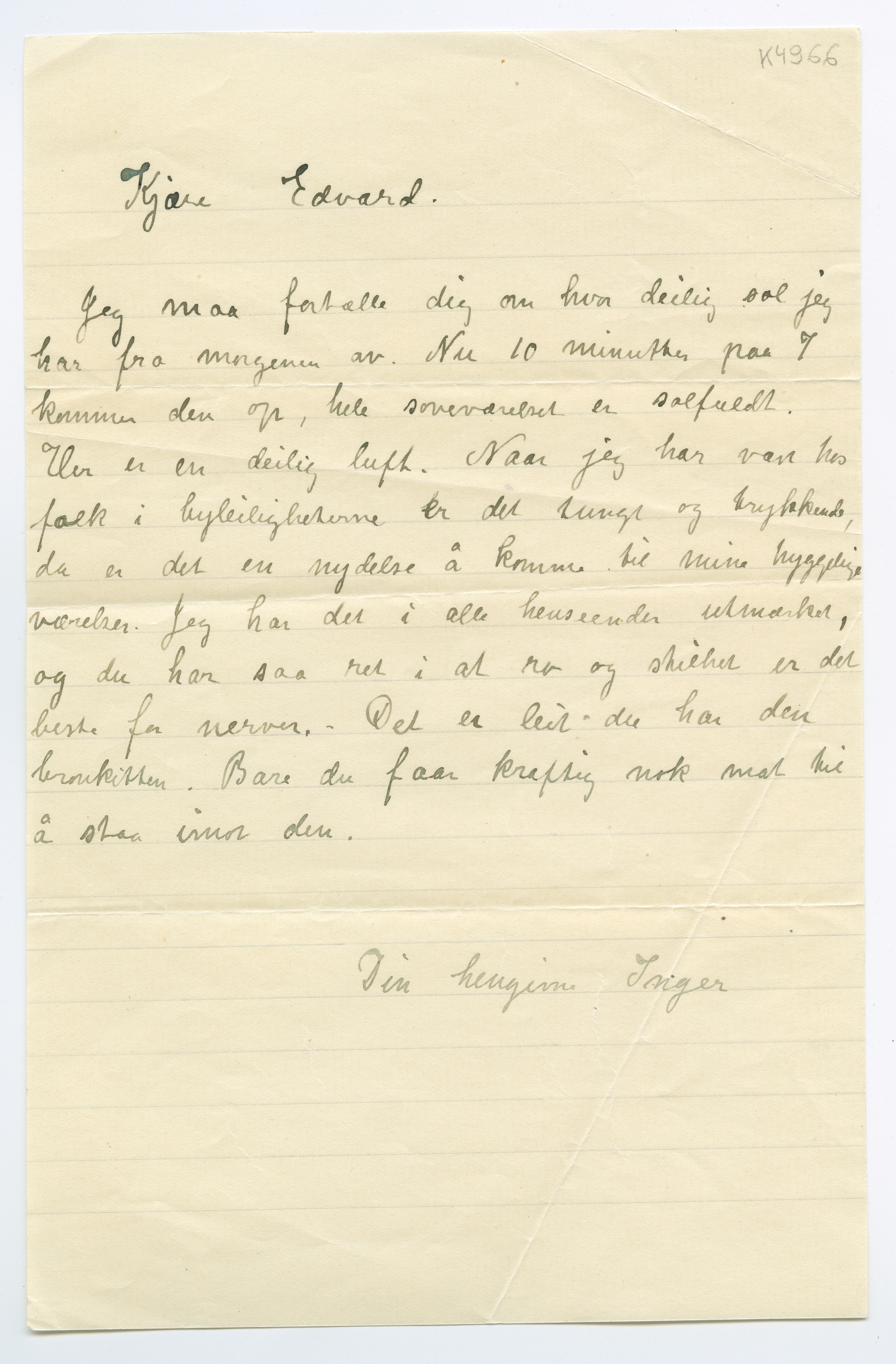 MM K 4966, Munchmuseet. Ikke datert. Brev fra Inger Munch.