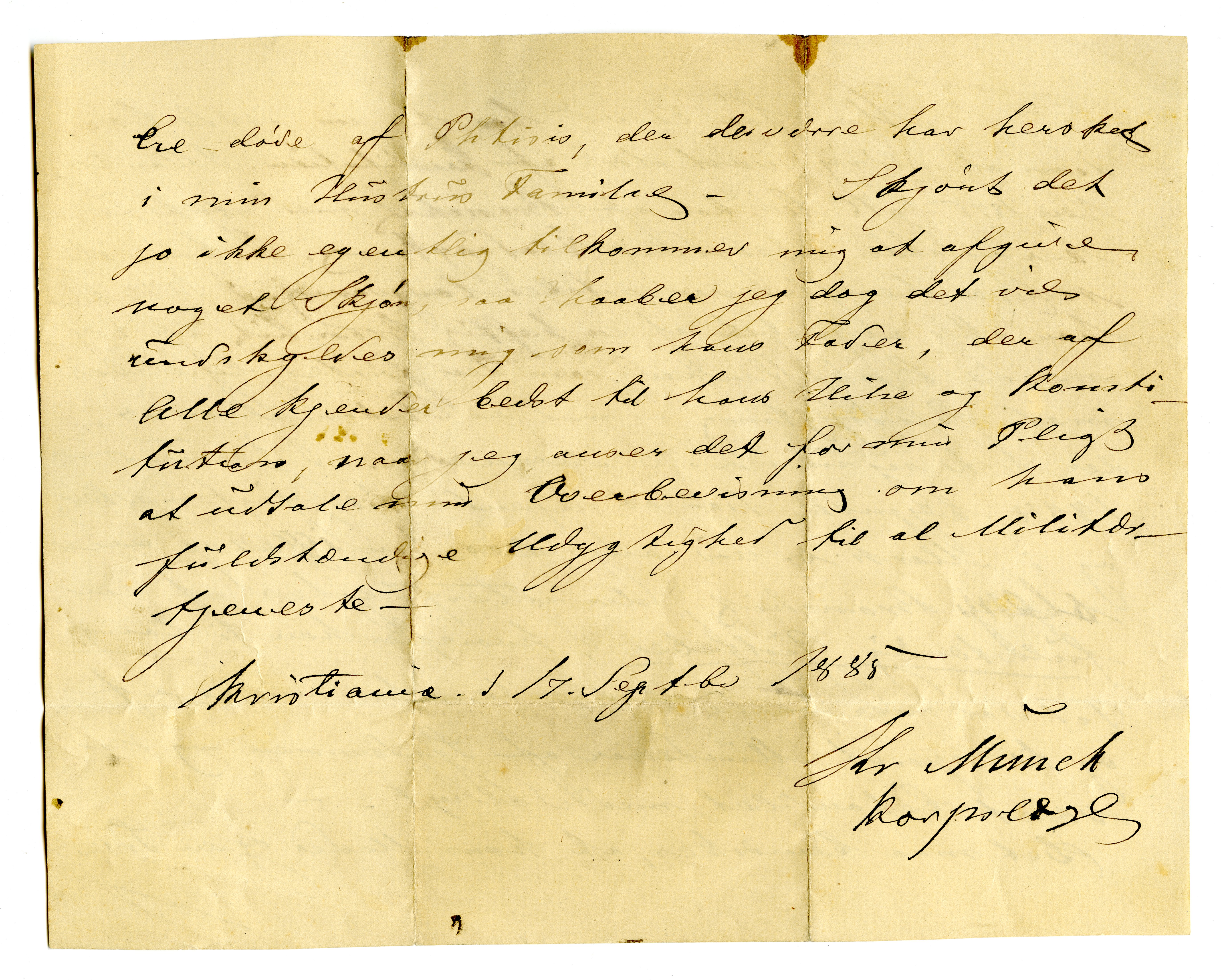 Filologisk kommentar: Sykeattest i brevs form fra Christian Munch til det militære.